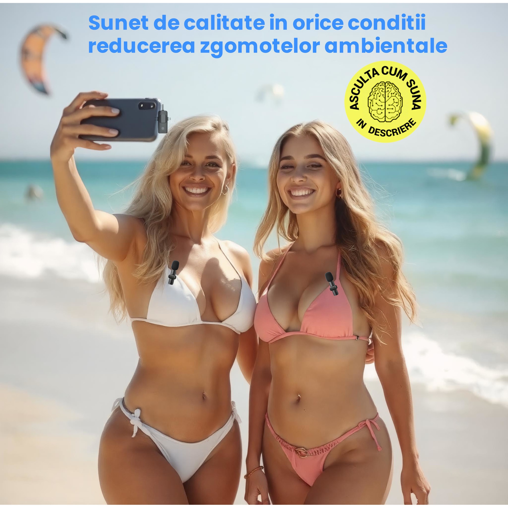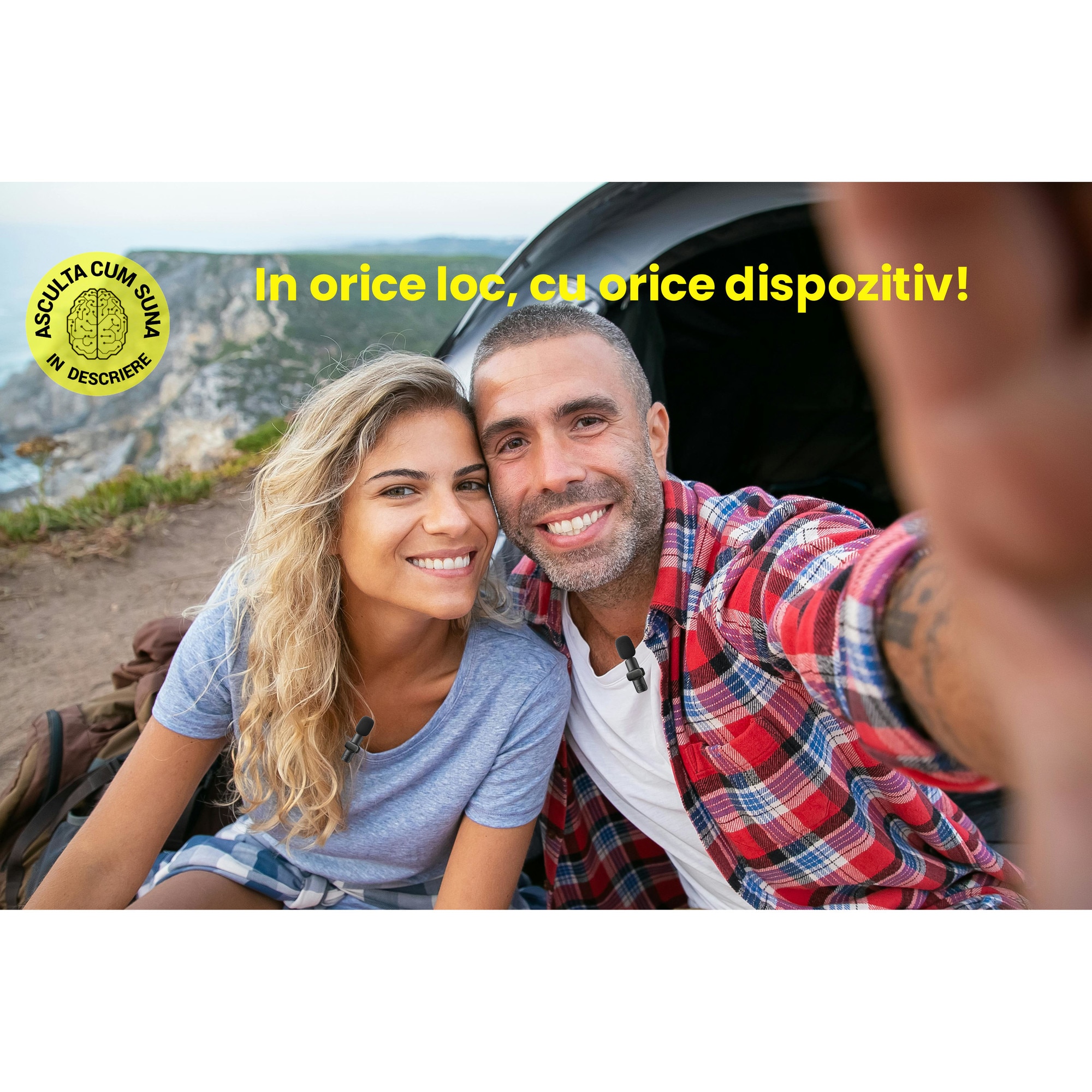 Un alt plus major este faptul că sunt două microfoane în set, ceea ce îl face perfect pentru interviuri sau filmări în doi. Instalarea este rapidă, practic plug & play, fără aplicații complicate sau setări dificile.