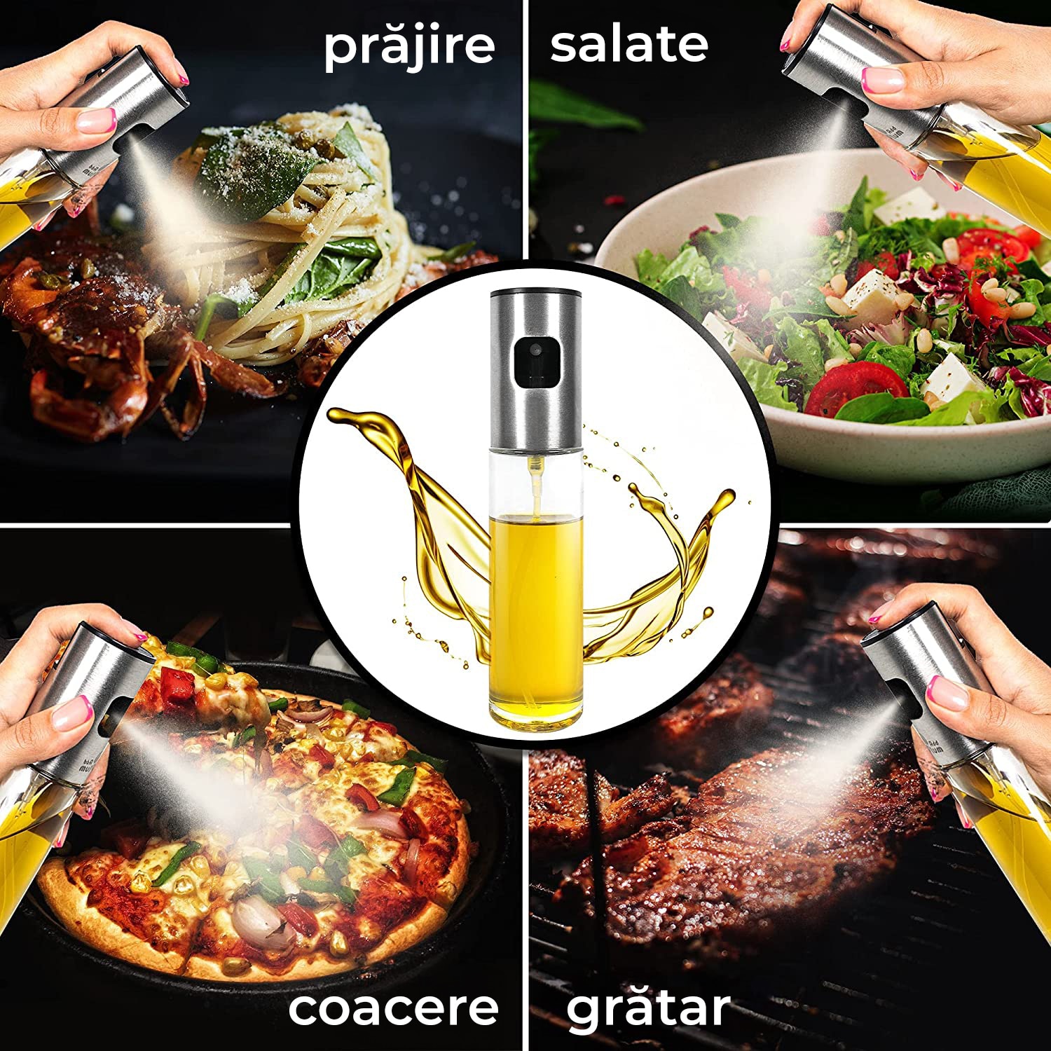 Set 2 oliviere spray/3 accesorii, 100ml, inox, argintiu