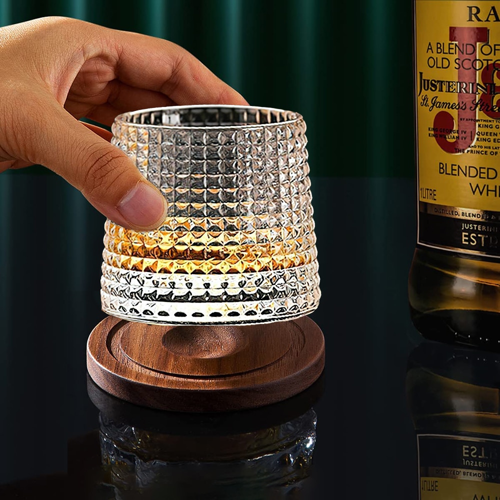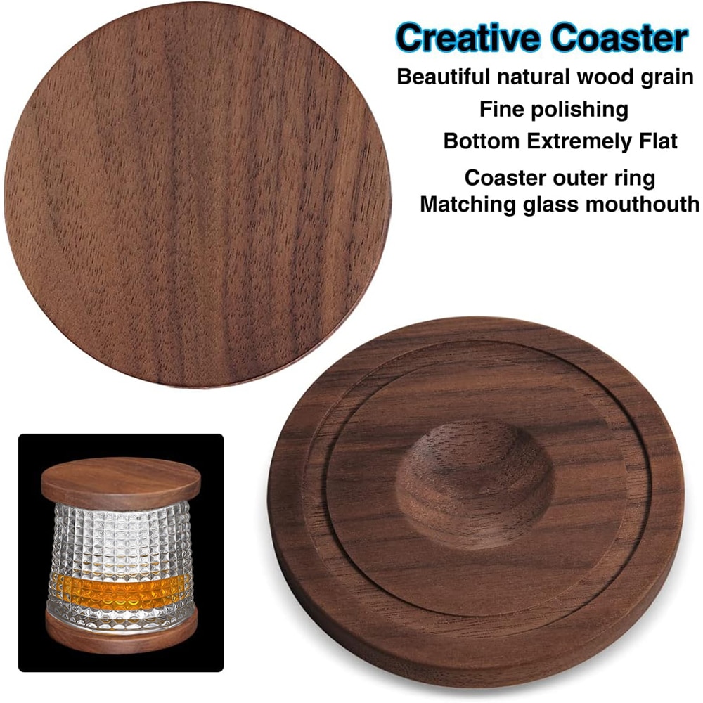 Set 2 pahare, FreeBiz, Sticla/Lemn, Cu suporturi, 160ml, Transparent/Squares