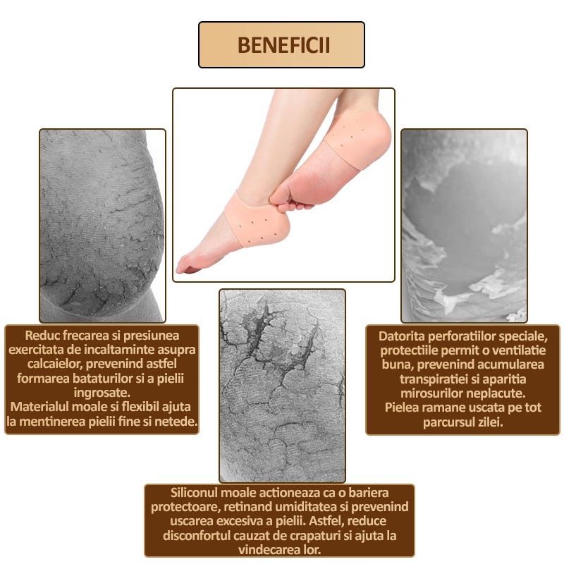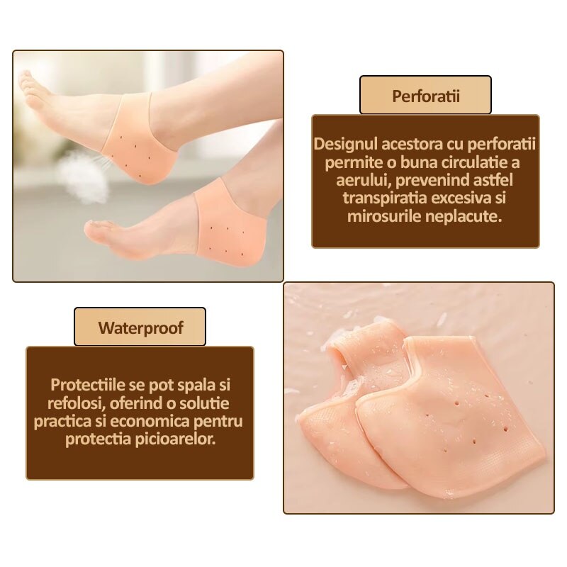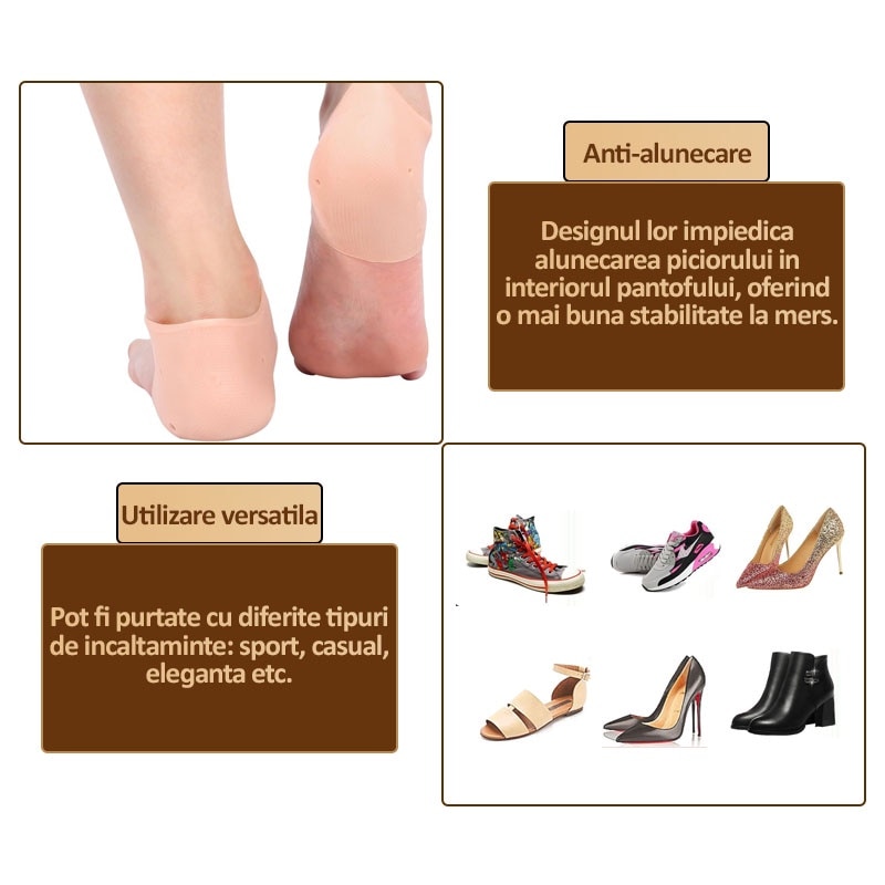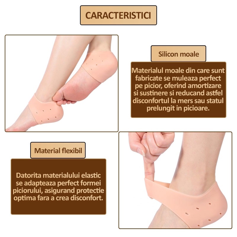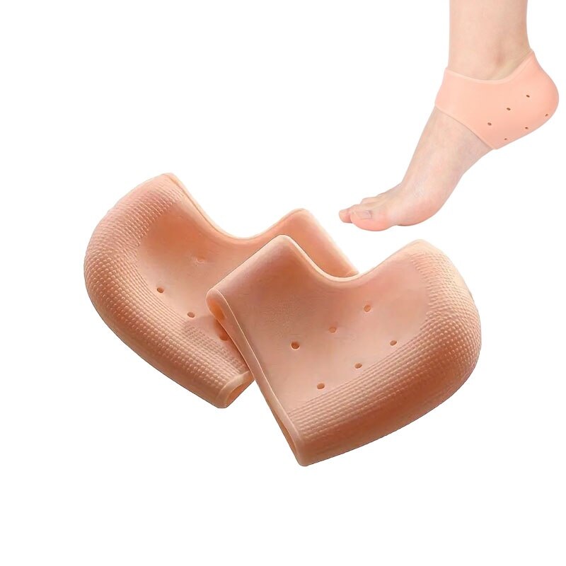 Set 2 protectii din silicon pentru calcaie NEXTLY, pentru dureri/bataturi/piele crapata, lavabile, reutilizabile, anti-alunecare, elastice, potrivite pentru orice incaltaminte, marime universala, crem
