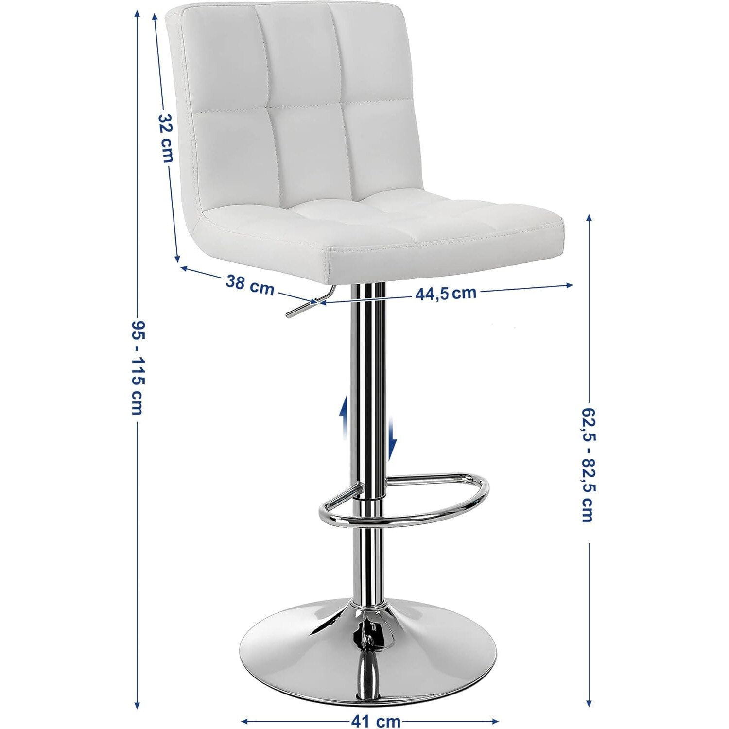 Set 2 scaune bar reglabile pe inaltime, cu spatar, sezut PU si suport picioare, rotatie 360A°, 38x45x115 cm, alb