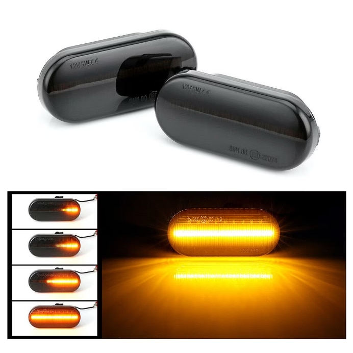 Set 2 semnalizari auto dinamice Ventoo®, pentru aripa, LED modul secvential, compatibile cu VW Golf 3, 4, Bora, Caddy, Passat B5.5, Sharan, Polo, Lupo, Transporter, Beetle, model fumuriu