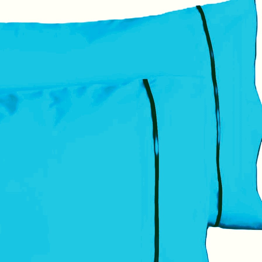 Set 2 x Fata de perna cu paspoal, 40 cm x 60 cm, Casa Bucuriei, albastru turcoaz/bleumarin, Bumbac 100%, doua fete
