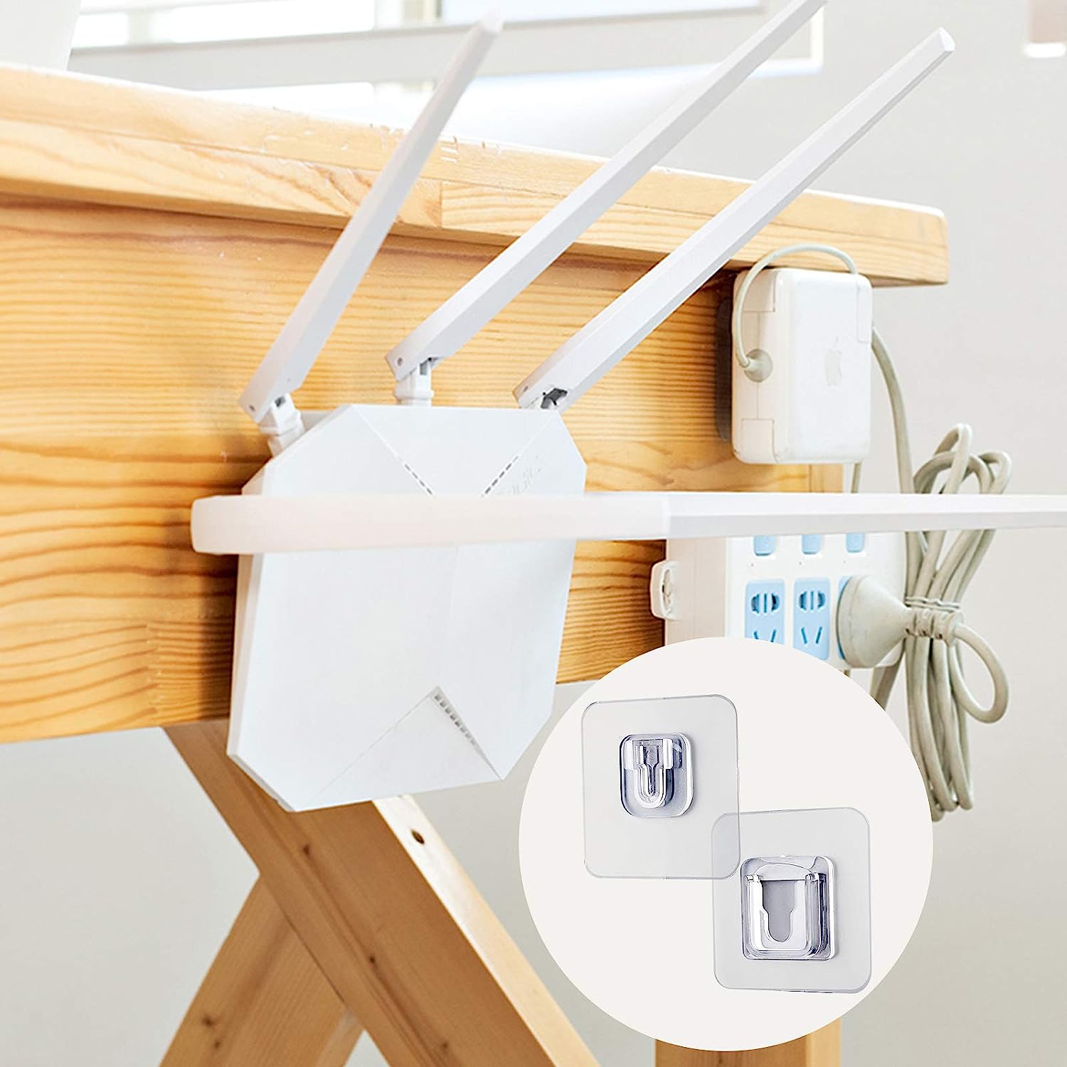 Set 20 suporturi duble de fixare, cu adeziv acrilic, transparente, ideale pentru agatat obiecte, rezistente la apa, capacitate de sustinere 10 Kg, ®Selling Depot