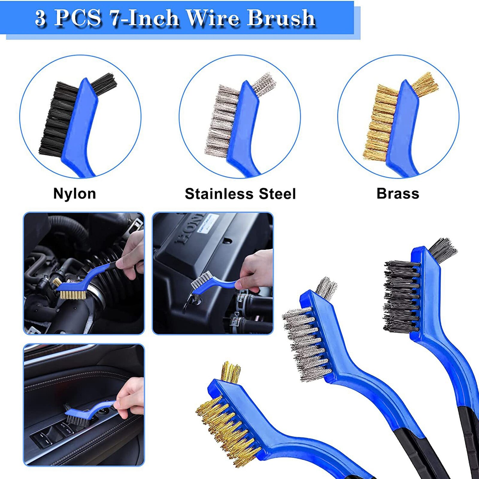 5 x perii de detaliere auto si 3 x perii de sarma: Cele 5 perii de detaliere auto de diferite dimensiuni pot satisface orice nevoi de curatare a crapaturilor mici, colturilor, piulitelor, rotilor, orificiilor de ventilatie, scaunelor auto, compartimentelor motorului, tablourilor de bord, panourilor etc. 3 buc perii de sarma, inclusiv 1 perie din otel inoxidabil, 1 perie din alama si 1 perie din nailon. Peria de sarma din diferite materiale este potrivita pentru diferite tipuri de suprafete, acestea vor aborda toate preocuparile dvs. de curatare.
