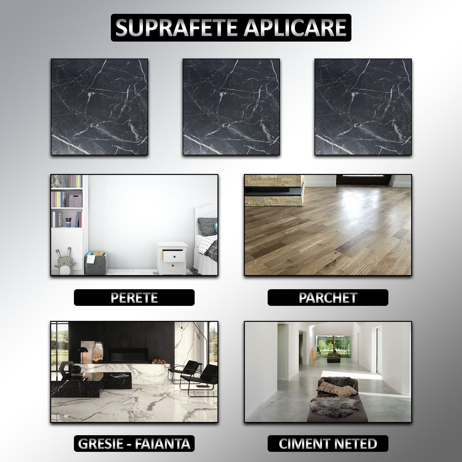 - usor de montat - cu o aplicare simpla si intuitiva, placile cu autoadeziv sunt usor de montat, permitandu-va sa transformati rapid aspectul unei incaperi fara a necesita