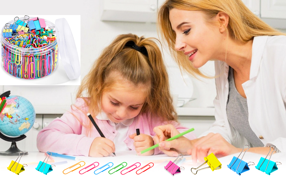 Set 240 piese birotica, Rqiurpn, clipsuri si pioneze, multicolor, metal/ABS/PVC
