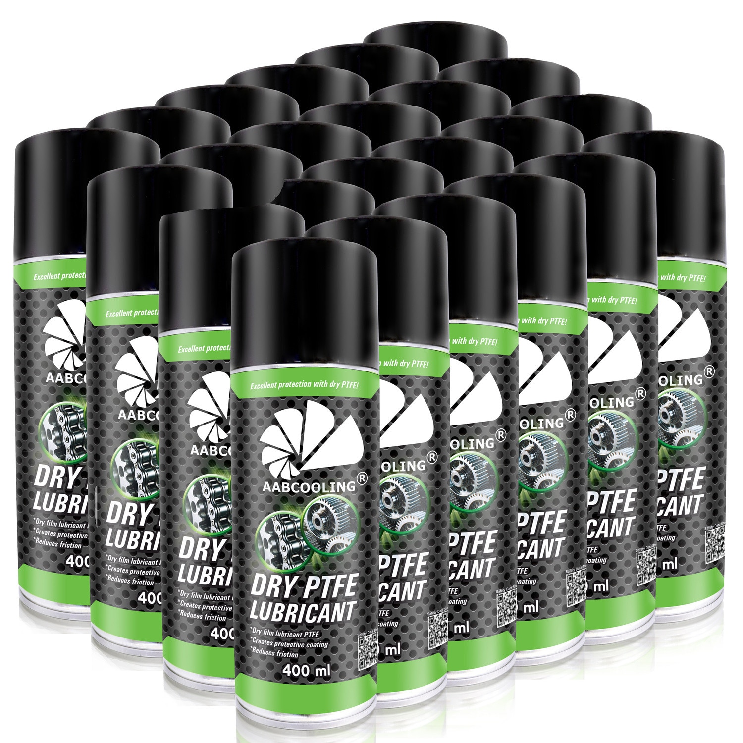 24x AABCOOLING Dry PTFE Lubricant 400 ml este un lubrifiant uscat PTFE de înaltă calitate, dezvoltat pentru lubrifierea și protejarea componentelor mecanice expuse la frecare, umiditate și murdărie. Lubrifiantul spray PTFE, îmbogățit cu particule de teflon, formează pe suprafață un strat uscat excepțional de durabil, cu proprietăți excelente de alunecare. Acest lucru reduce semnificativ uzura elementelor mobile, previne blocajele și elimină scârțâitul și zgomotele nedorite.