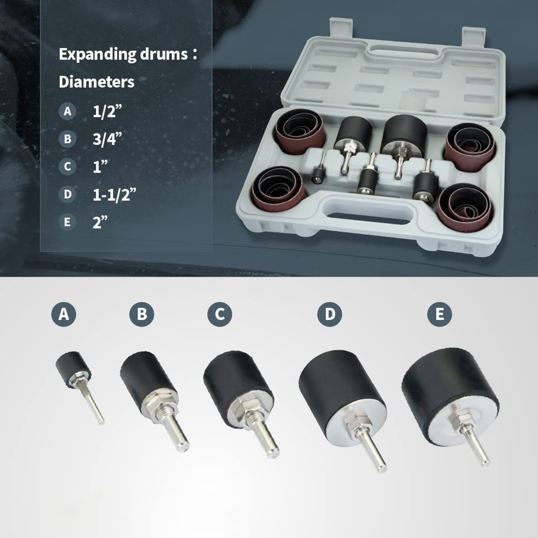 Set 25 Tamburi de slefuire, Oxid Aluminiu / Inox, Diverse marimi, Granulatie 80 si 120, Maro inchis