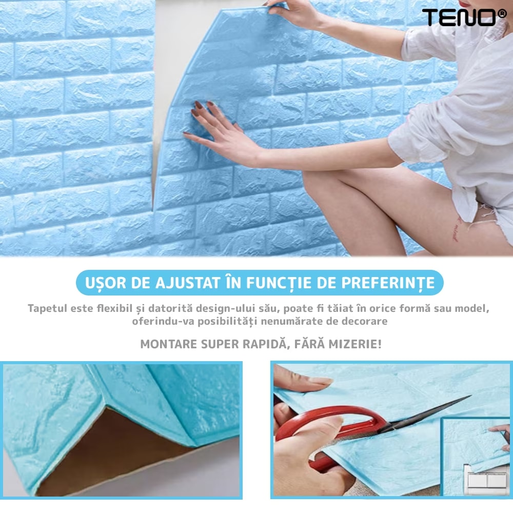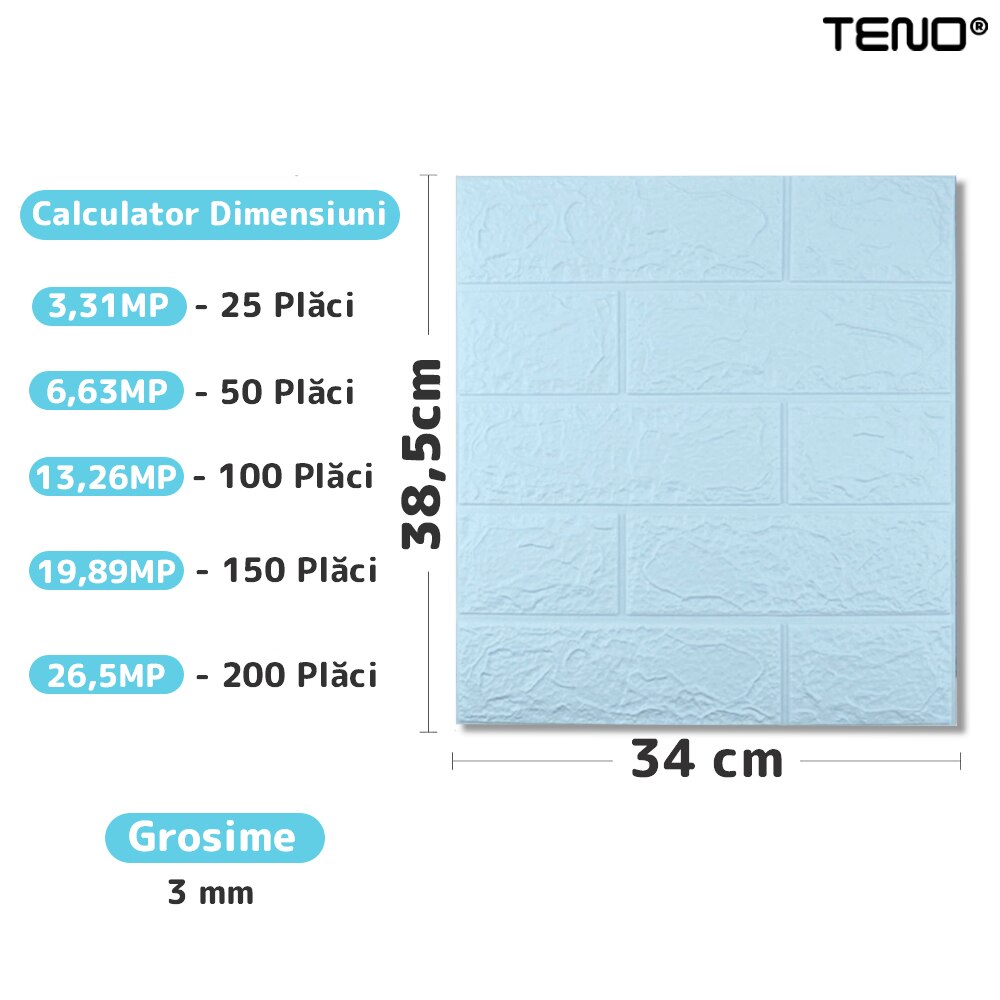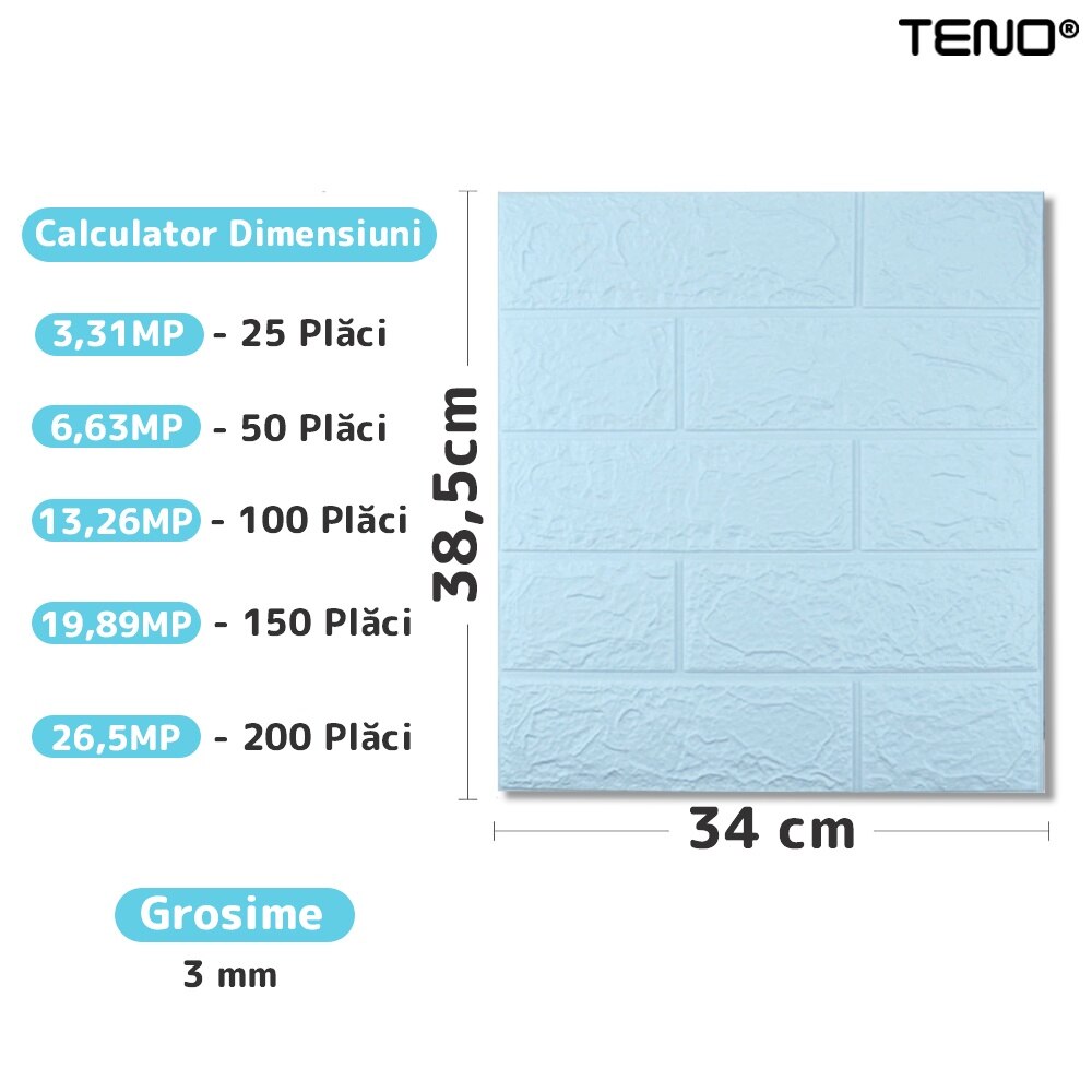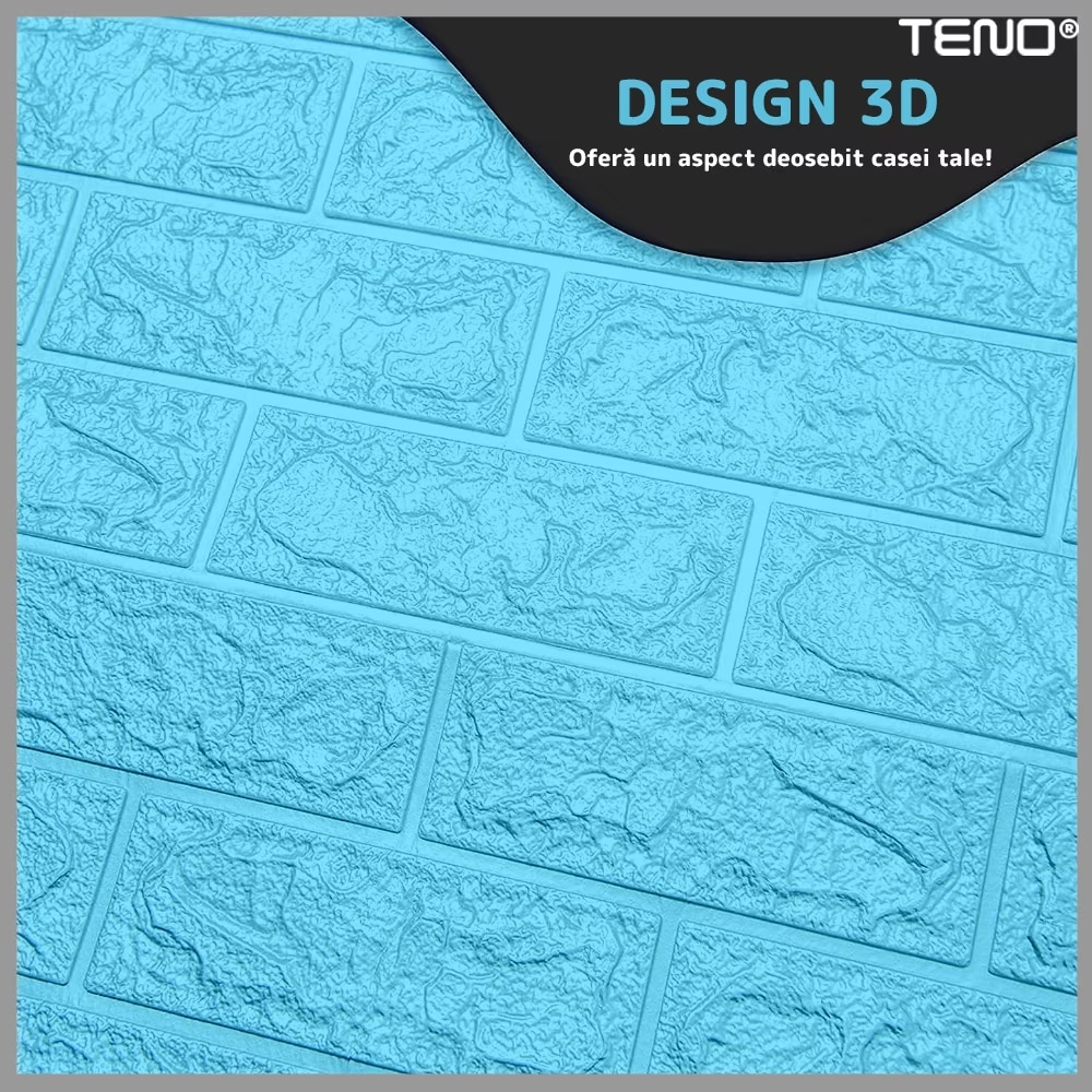 Set 25x Tapet Mic Caramida 3D Teno®, suprafata acoperire 3.31 mp, autoadeziv, waterproof, usor de montat, design modern, 38.5x34 cm, albastru