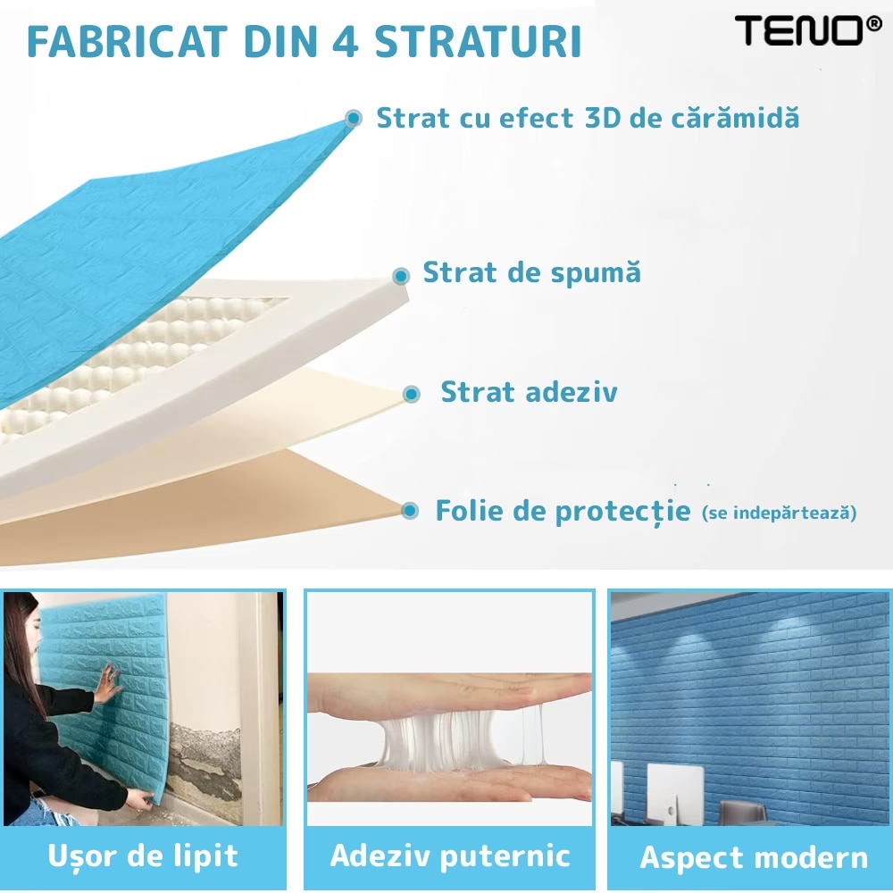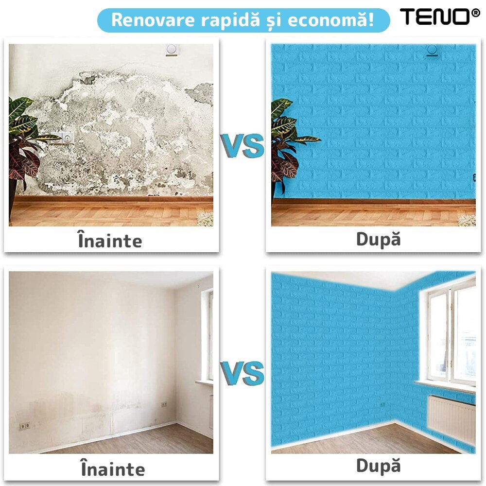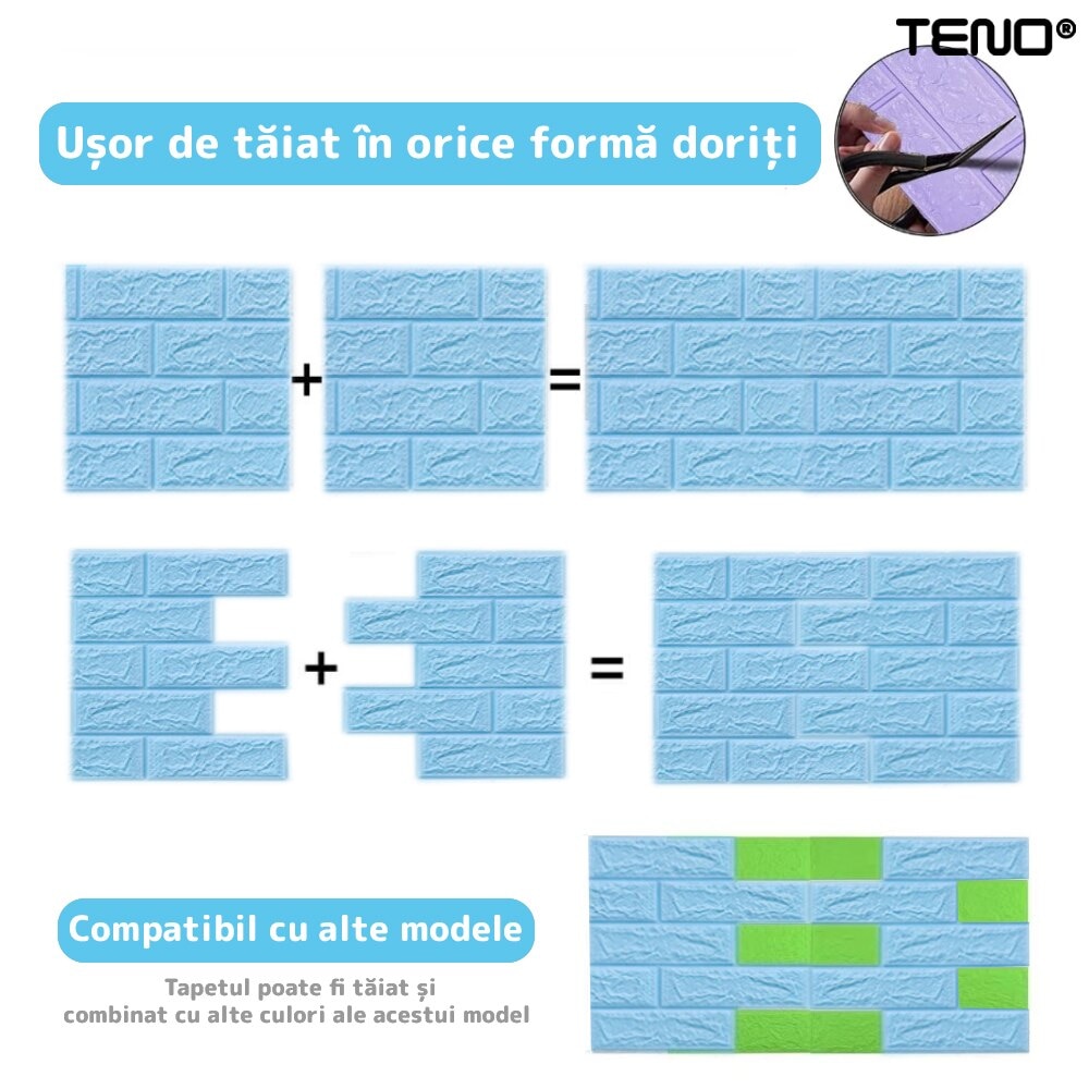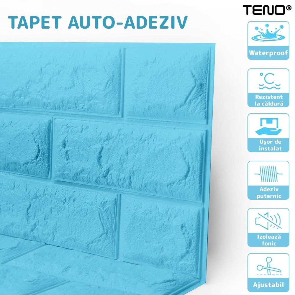 Set 25x Tapet Mic Caramida 3D Teno®, suprafata acoperire 3.31 mp, autoadeziv, waterproof, usor de montat, design modern, 38.5x34 cm, albastru