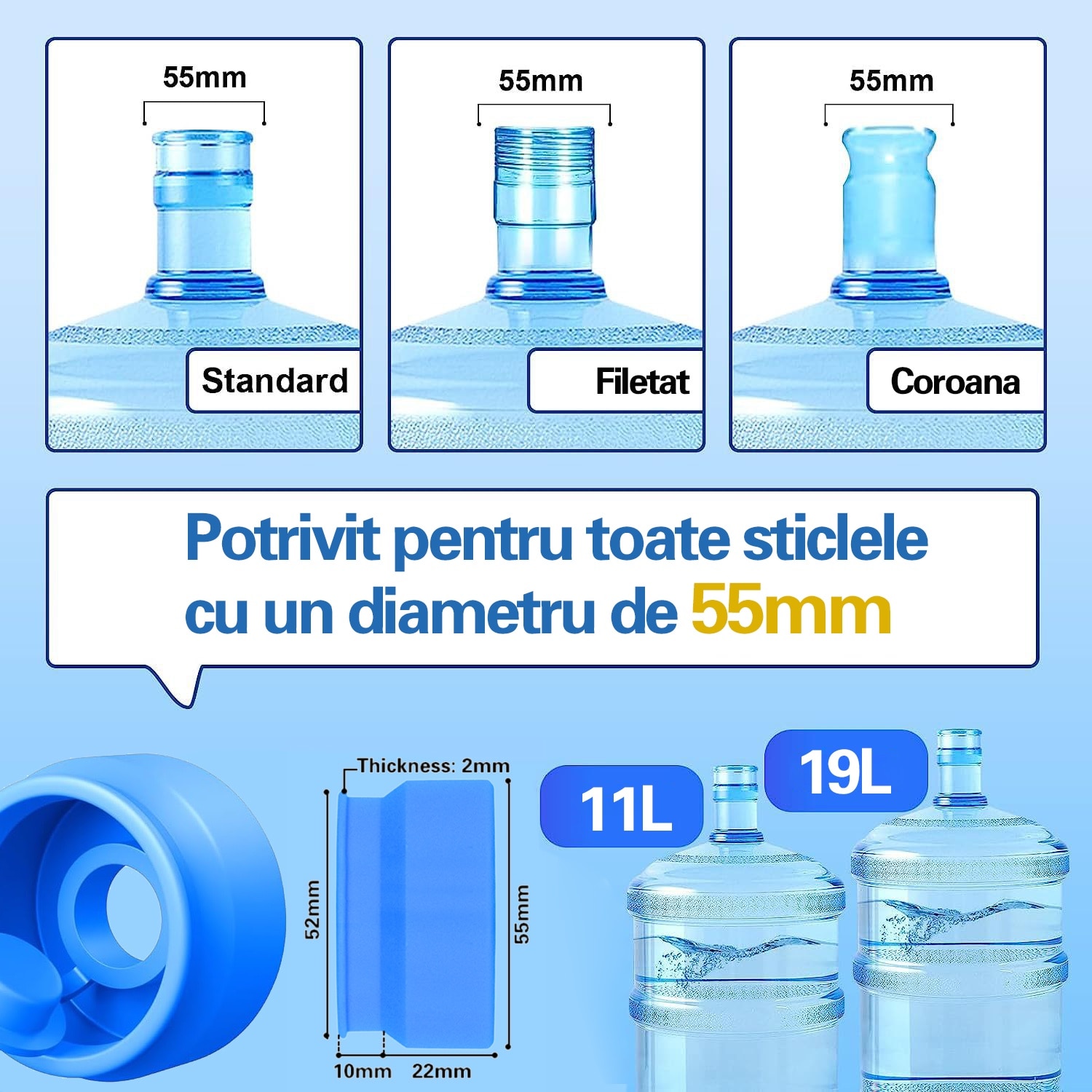 Set 2Capac pentru bidon de apa, Silicon Alimentar, 55mm, Reutilizabile, Bidon 19 litri sau 11 litri, Inter schimbabil, Anti scurgere, BEEVME, Albastru