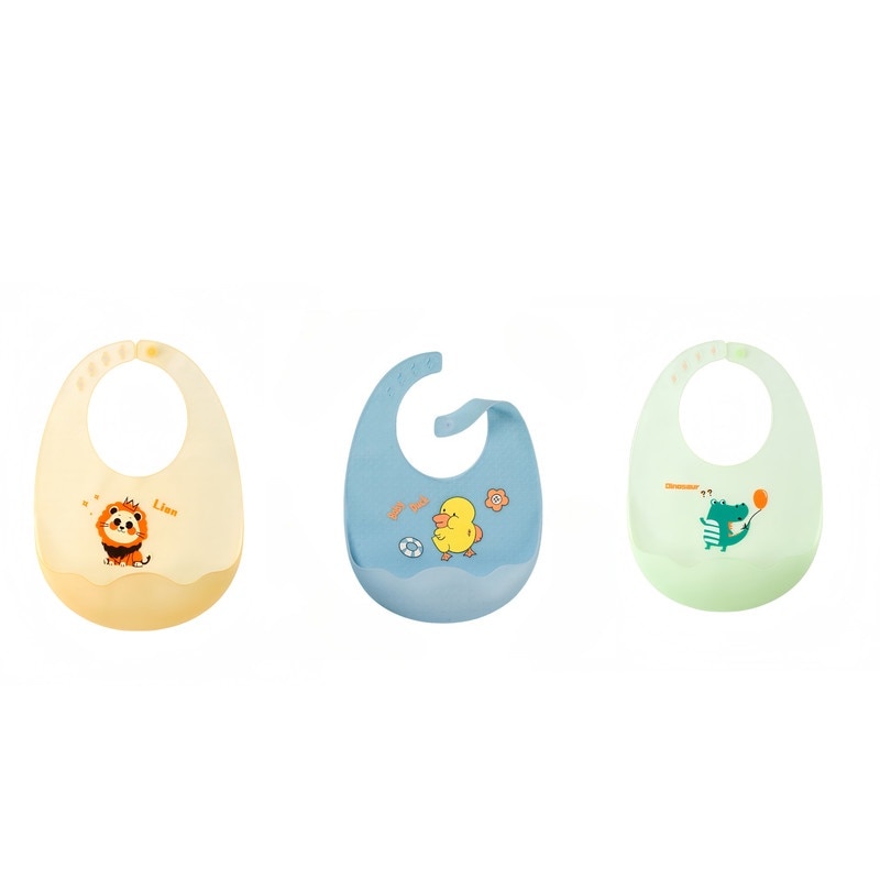 Set 3 bave din silicon ultra-subtiri pentru bebelusi, portocalie, verde, albastra, 21x30cm, usor de curatat