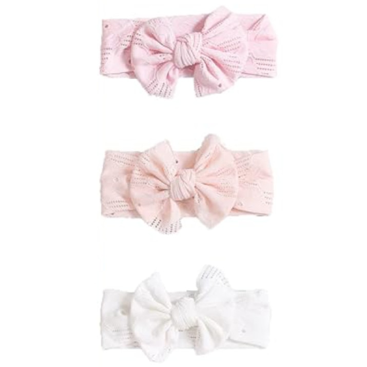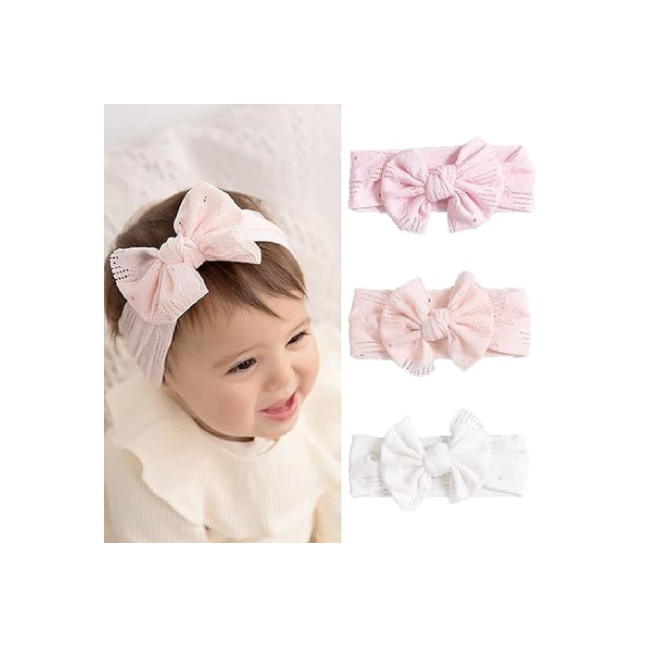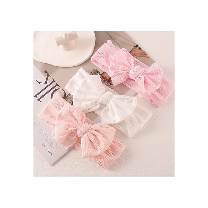Set 3 Bentita cu fundita pentru fetite, JENUOS®, Dantela, pentru 0-3 ani, Multicolor