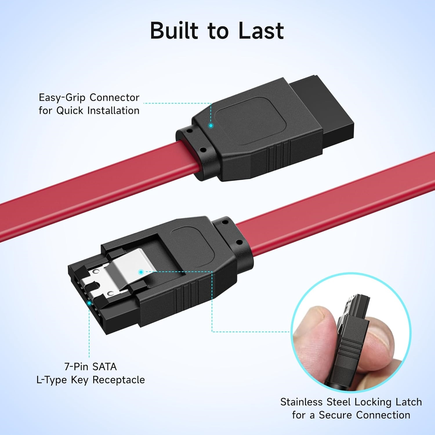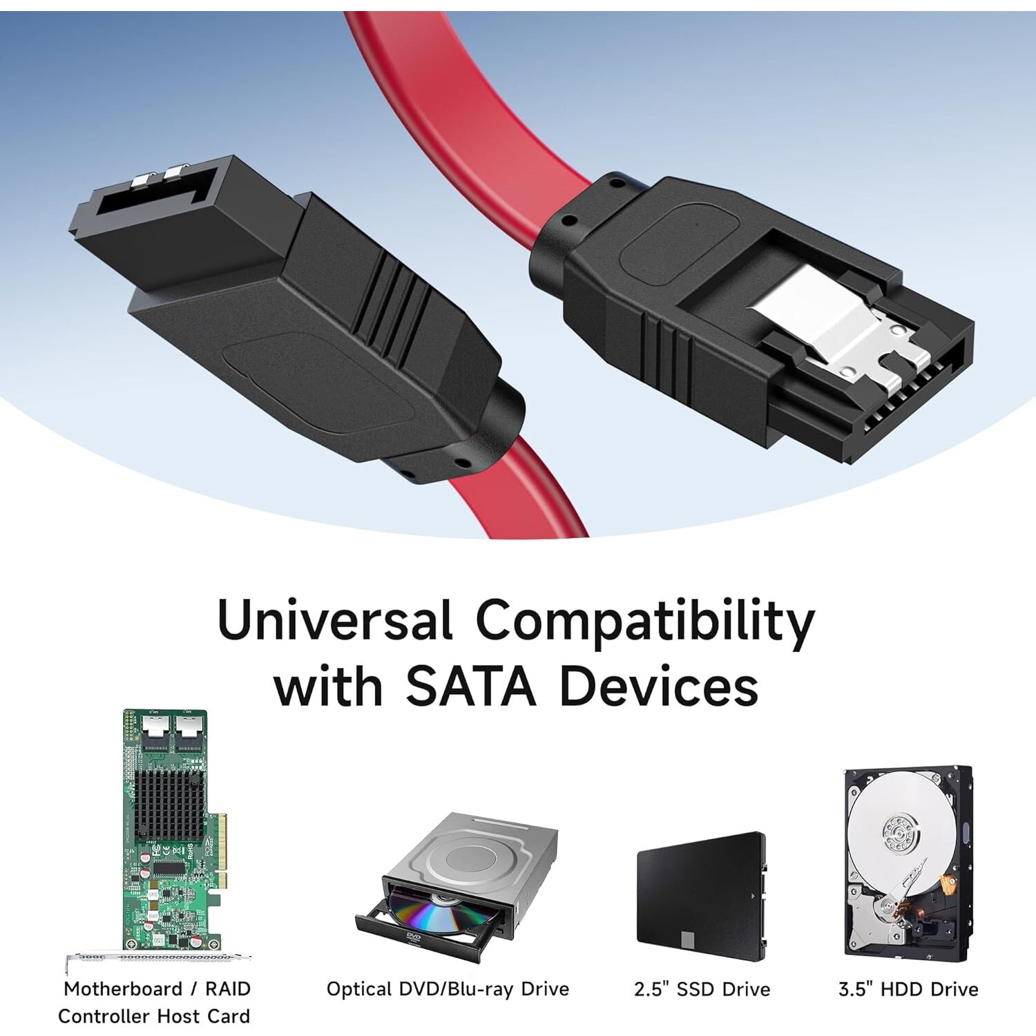 Set 3 Cabluri SATA, 6Gb/s, Transfer rapid de date, Compatibil cu SATA I si SATA II, PVC/Metal, 50cm, Rosu