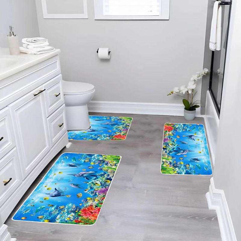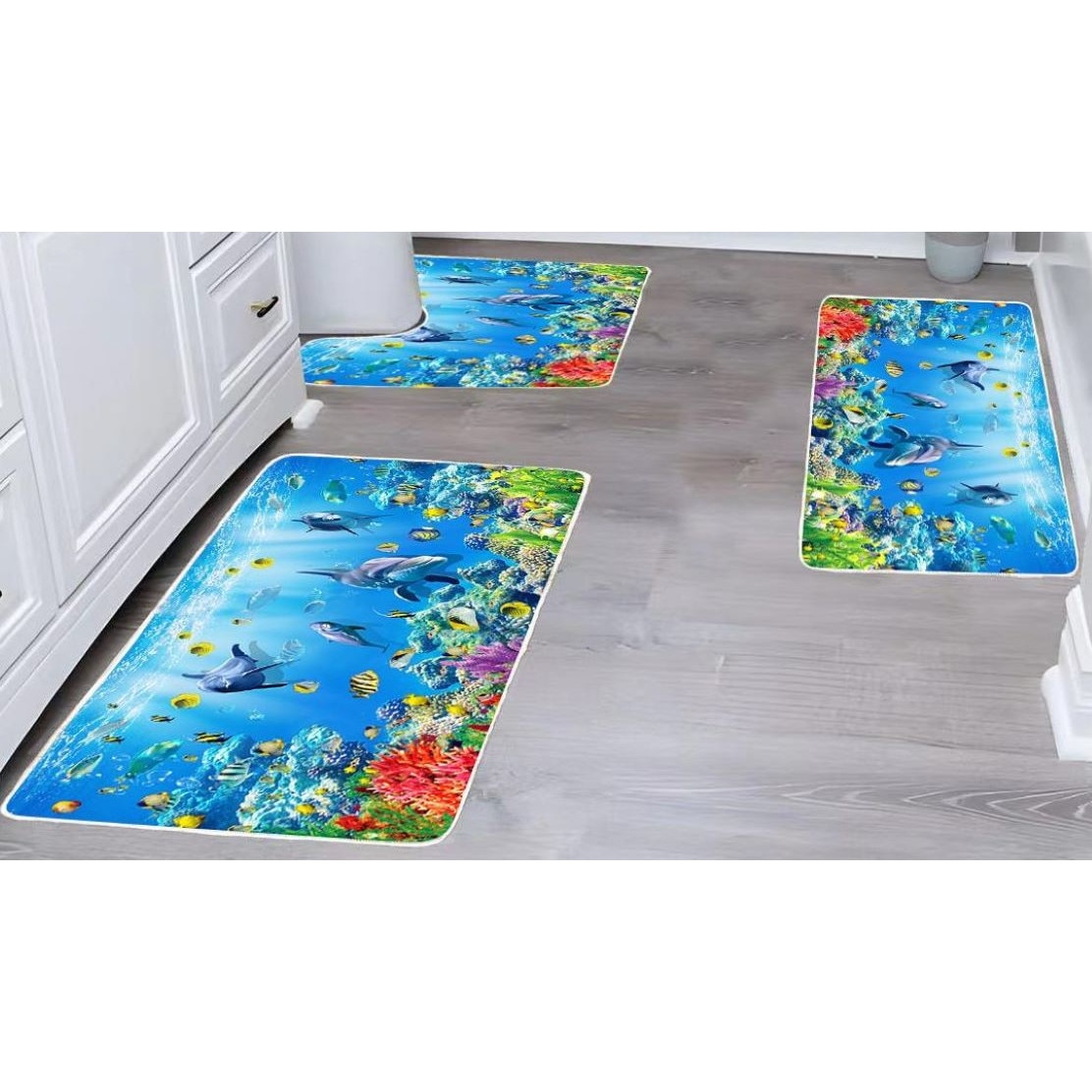 Set 3 covoare de Baie, Antiderapant, imprimeu Gri-Auriu, 50x60cm, 50x80cm, 60x100cm