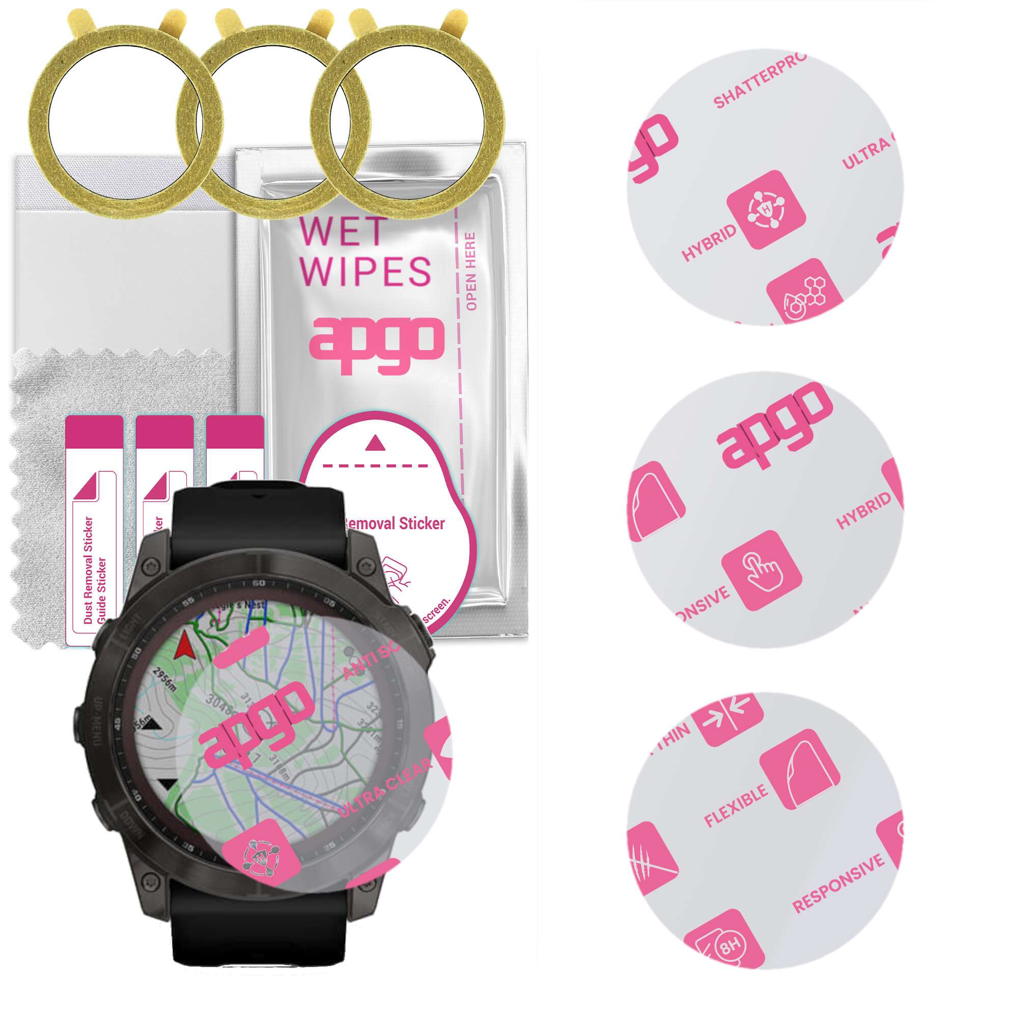 Set 3 Folii Protectie apgo Hybrid Glass pentru Garmin Fenix 7X 51mm, Ultra Clear, Rezistenta 8H, Transparent