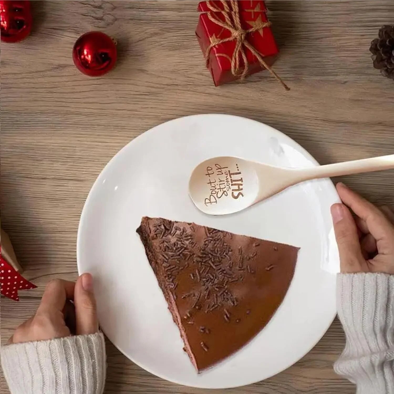 Set 3 linguri amuzante din lemn, Fokelyi, 12inch, design personalizat, cadou de Craciun