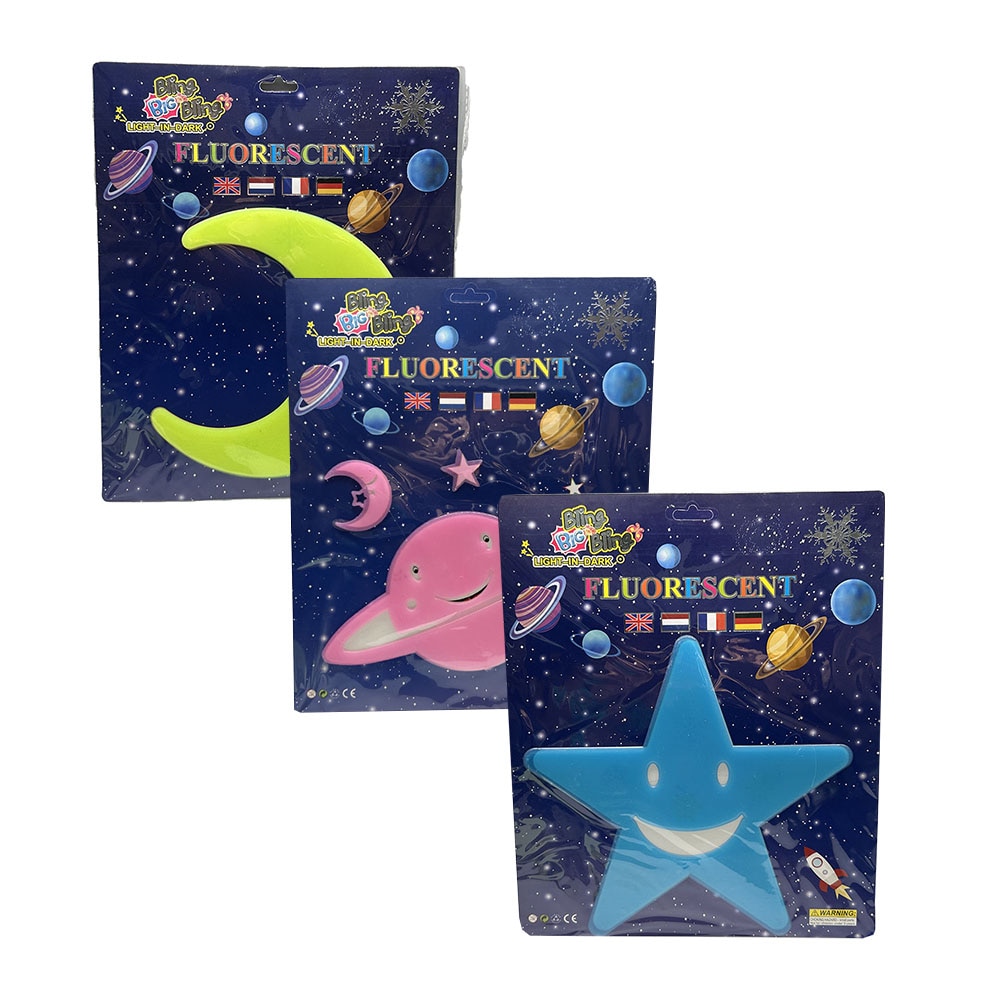 Set 3 Stickere decorative fosforescente pentru decorarea camerei, stea, planete, semiluna, 20 cm, VisionXXI