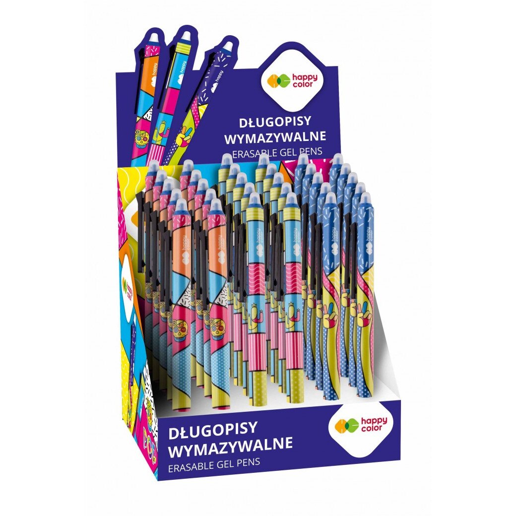 Set 30 pixuri automatice Happy Color, varf 0,5 mm, albastru, guma de sters, 137x115x150mm