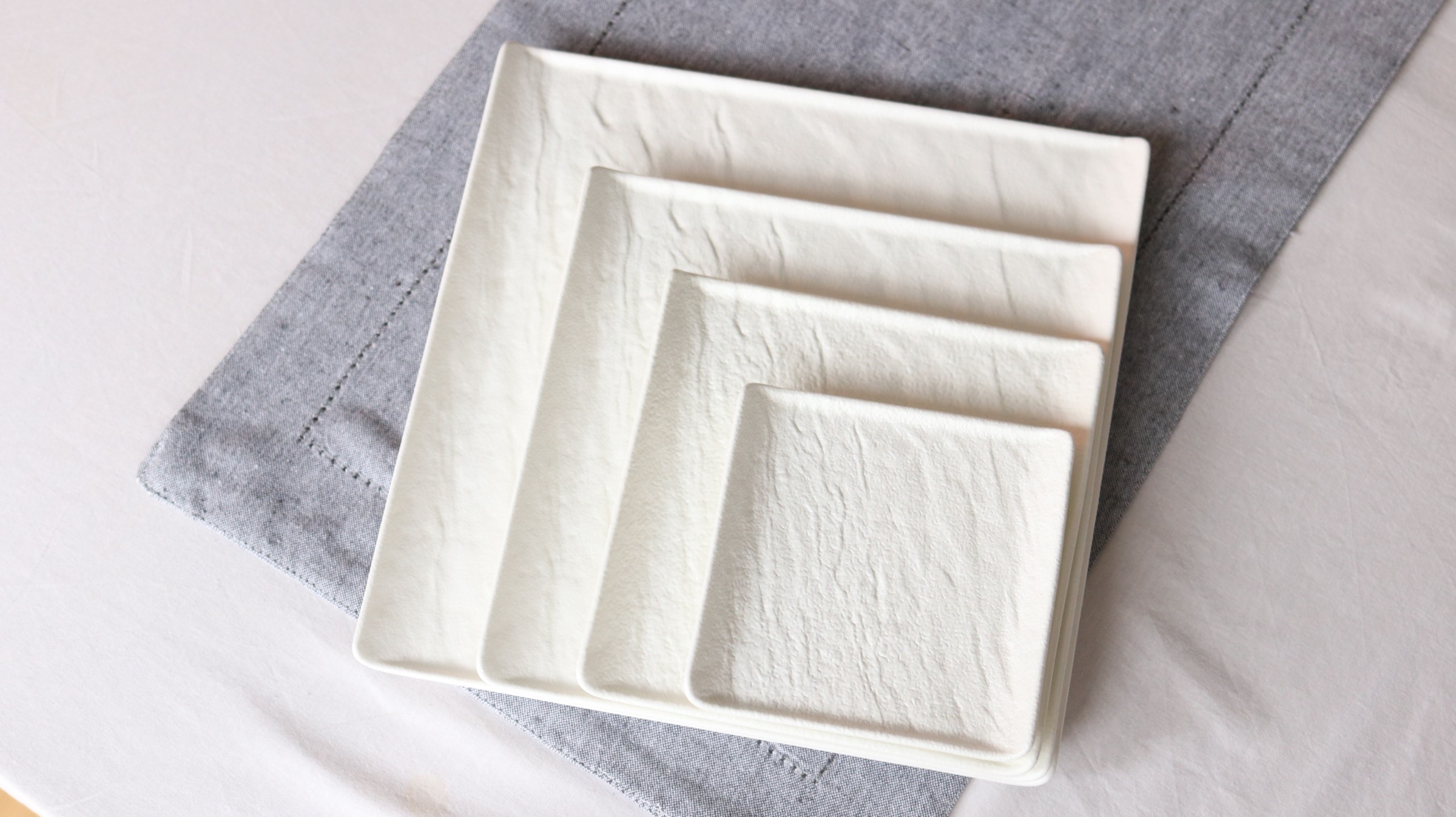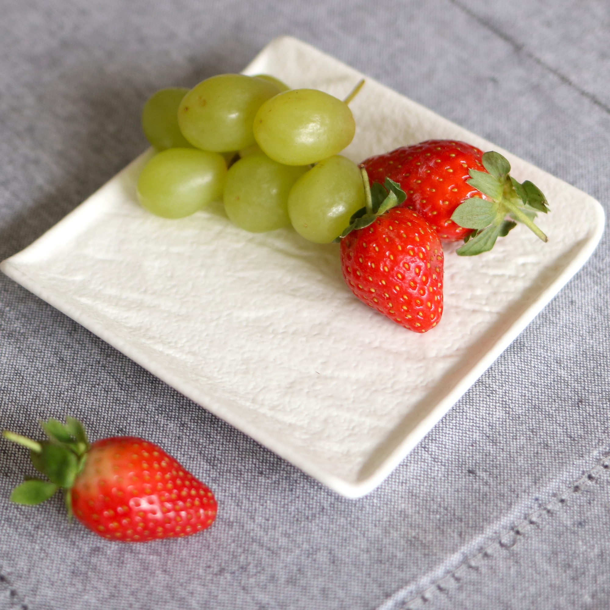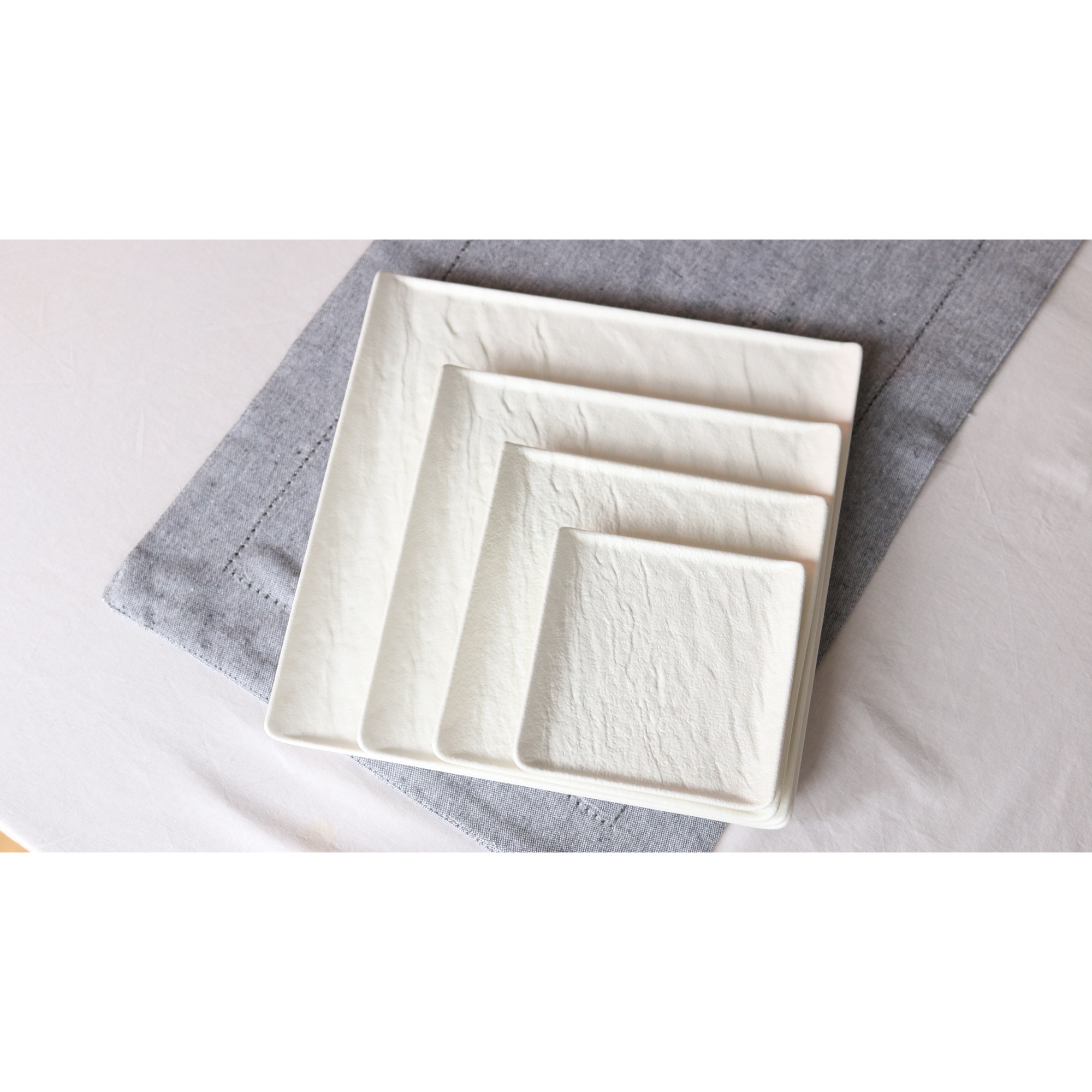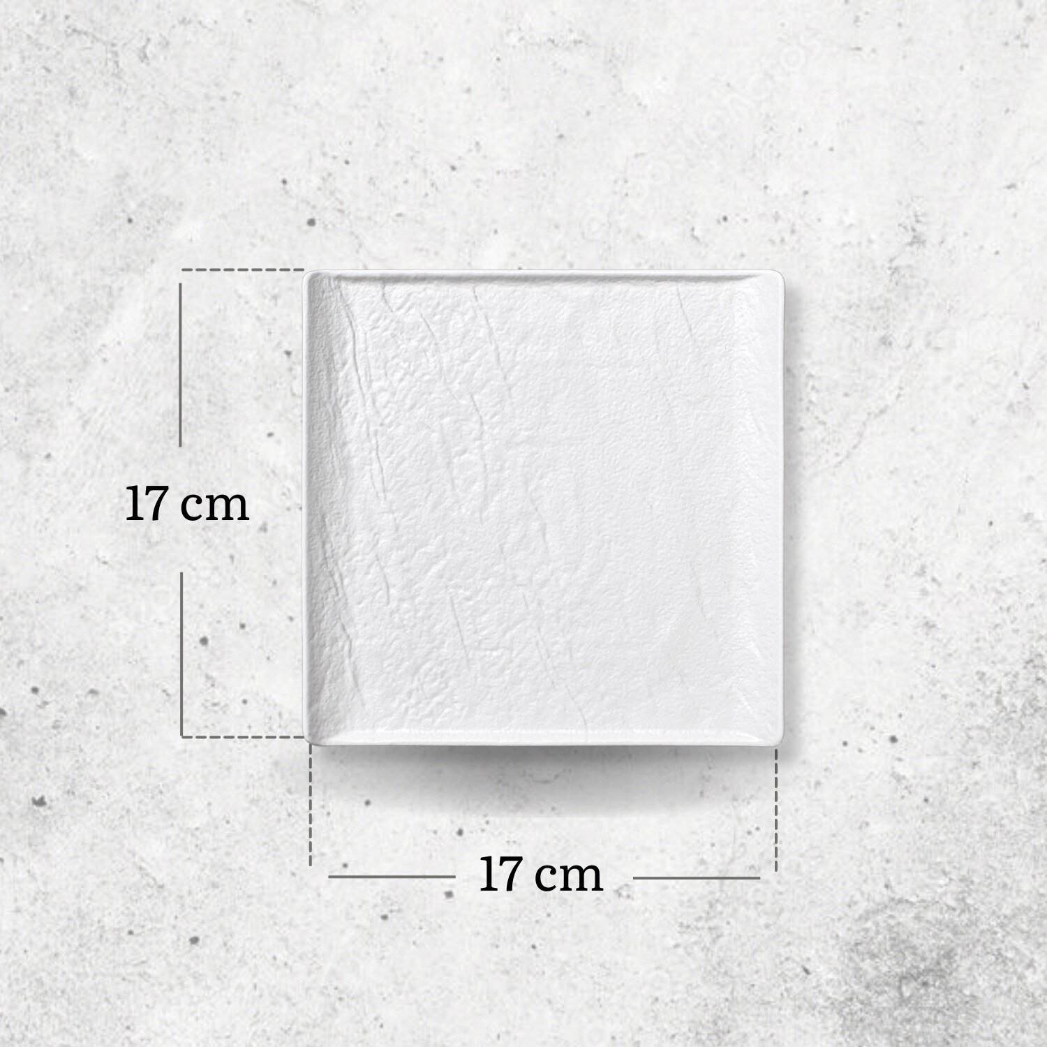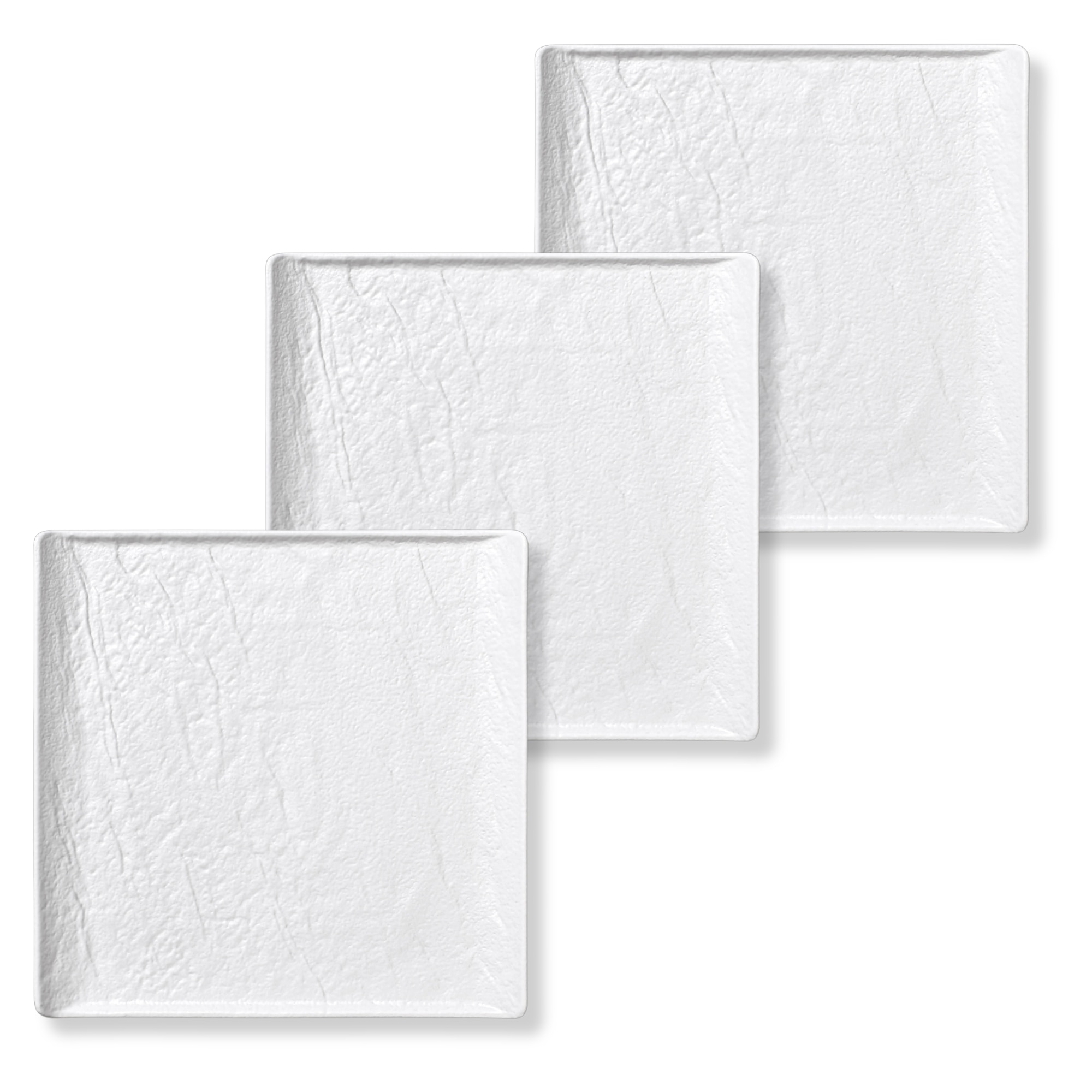 Set 3x Farfurie desert, portelan, patrata, Alb mat, 17x17 cm, imitate piatra, WILMAX WHITESTONE