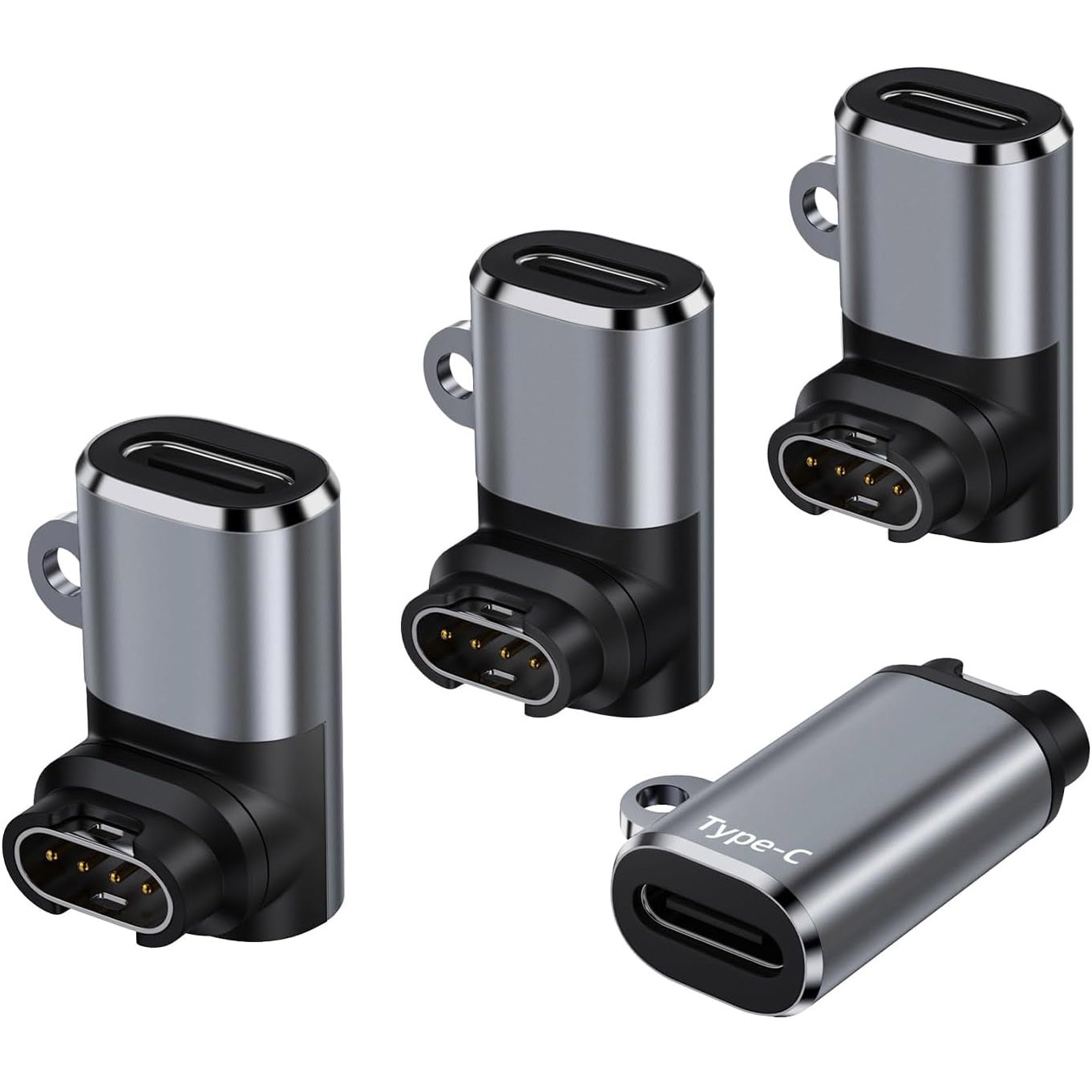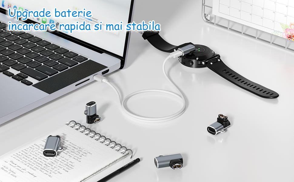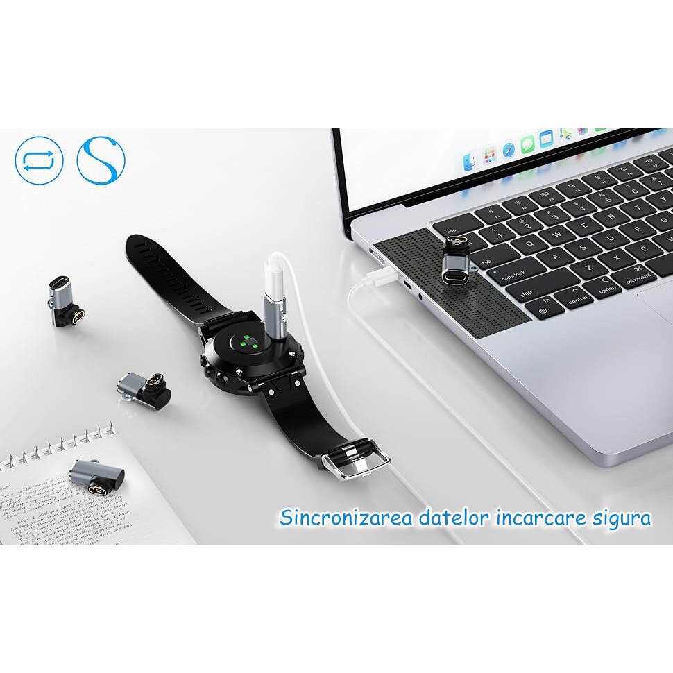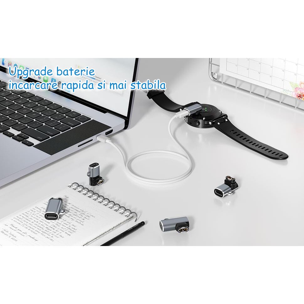 Set 4 adaptoare incarcator pentru smartwatch Garmin, compatibil cu smartwatch Fenix 7/7S/7X/6S/6/6X/5S/5/5X, Forerunner 255/255S/245/245M/745/645/645M/158 si multe altele, conectoare Type-C, Compact, OUYLAF, Negru