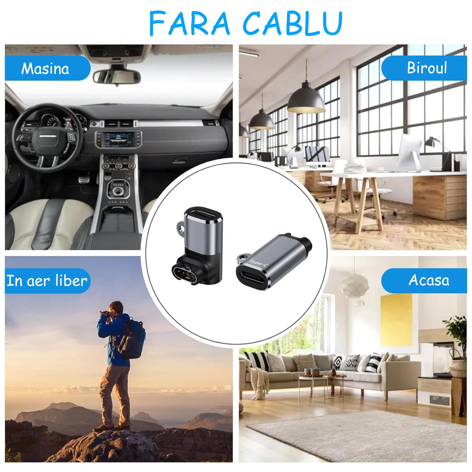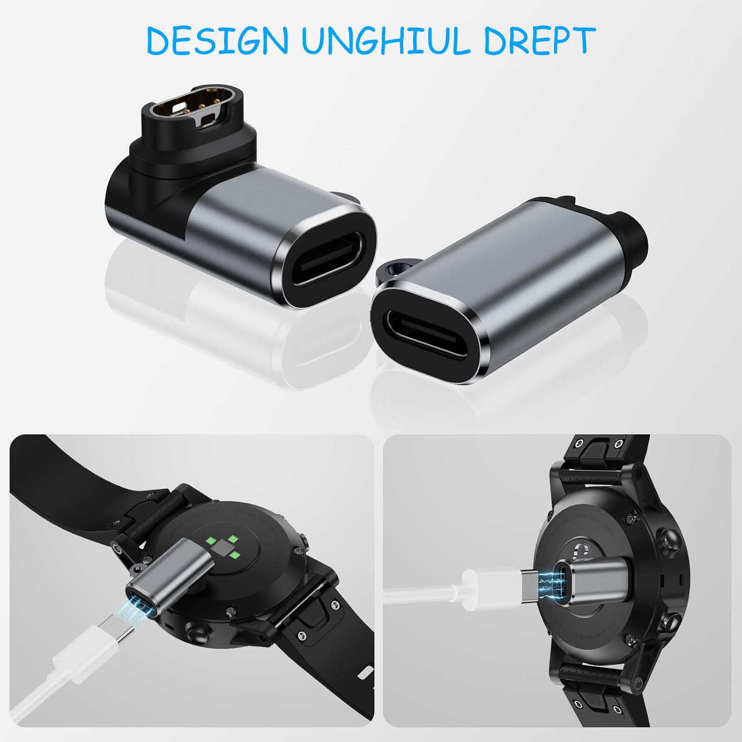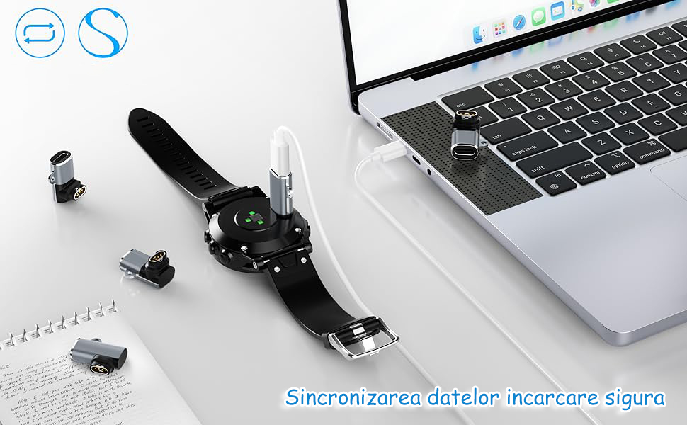 Set 4 adaptoare incarcator pentru smartwatch Garmin, compatibil cu smartwatch Fenix 7/7S/7X/6S/6/6X/5S/5/5X, Forerunner 255/255S/245/245M/745/645/645M/158 si multe altele, conectoare Type-C, Compact, OUYLAF, Negru