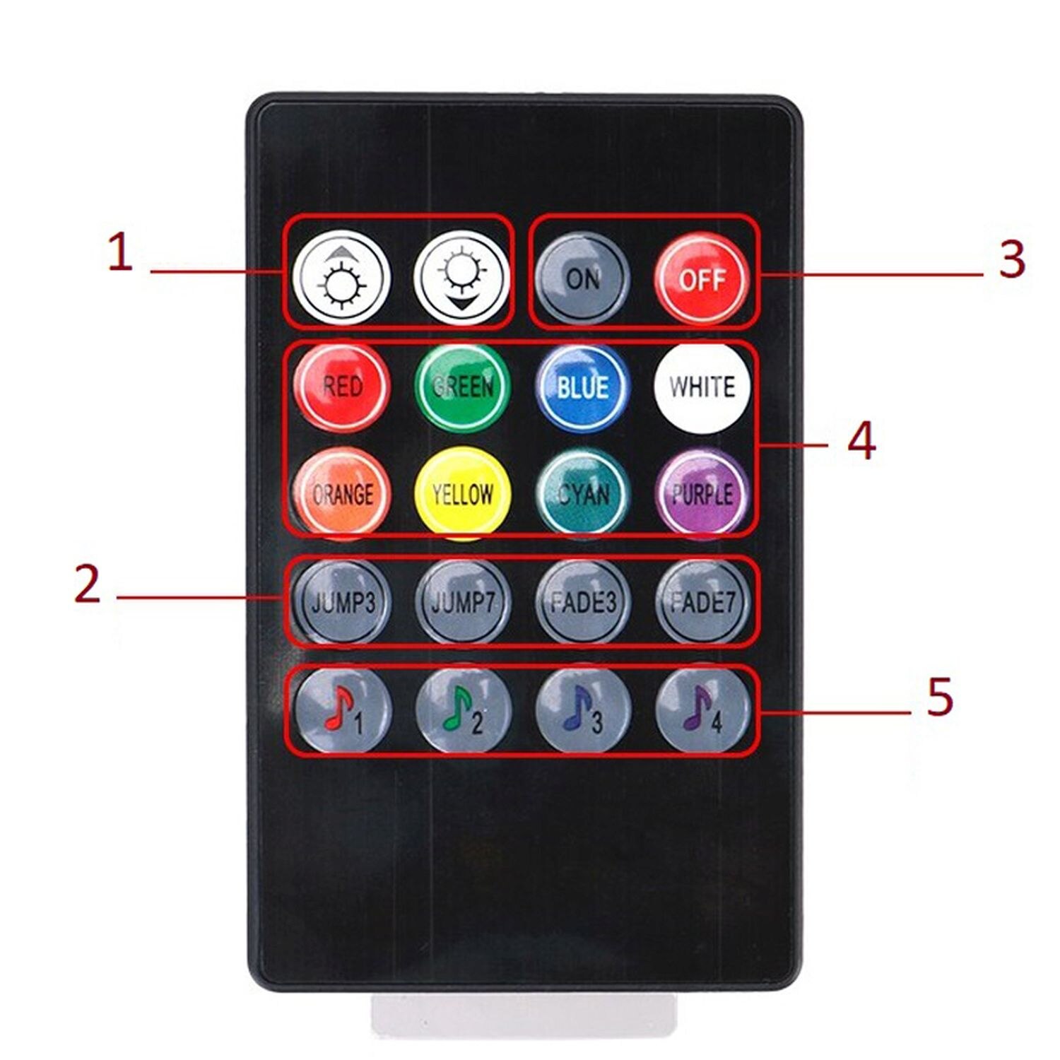 ✔️ Functii telecomanda: ON/OFF, selectare culoare, mod Fade/Jump, control intensitate, efecte reactive la muzica.