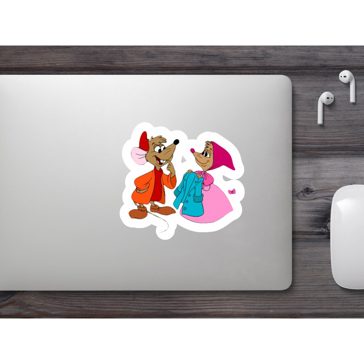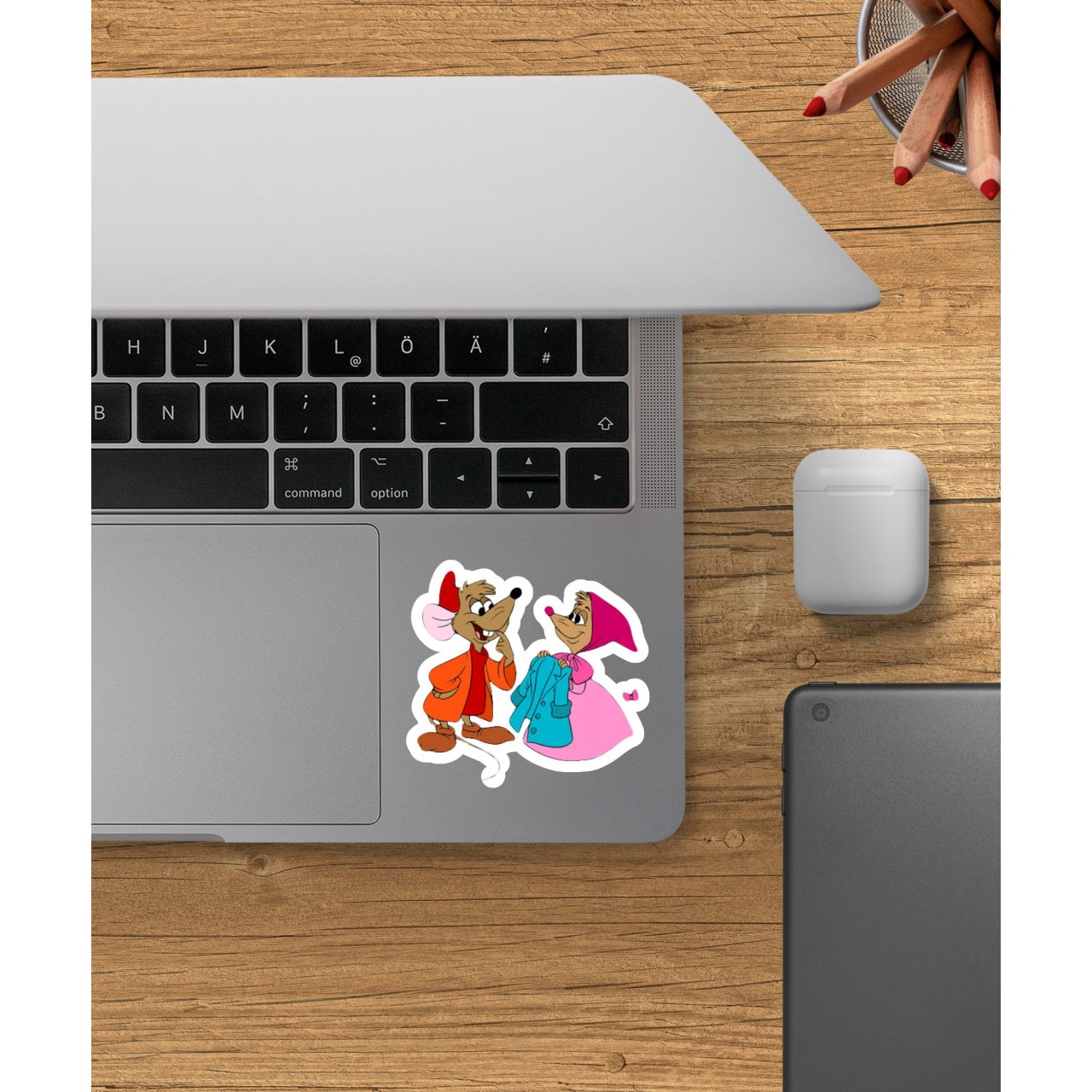 Set 4 bucati, Sticker decorativ, Jaq din Cenusareasa si iubita lui, Rezistent la apa, NO9793, 10 cm, Multicolor