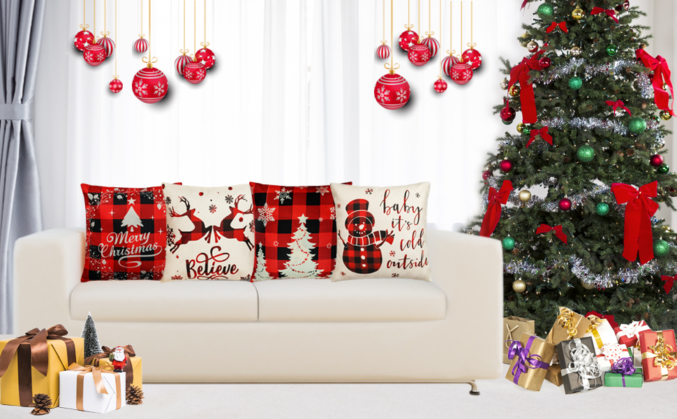 Set 4 fete de perna JOGVELO, Motiv Craciun, bumbac, 45x45cm, Rosu