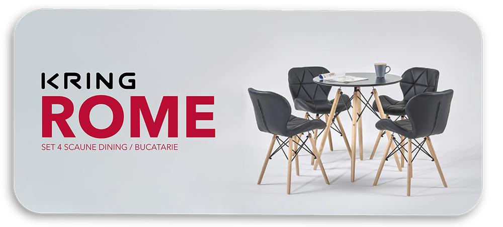 Set 4 scaune dining / bucatarie Kring Rome, picioare lemn, tapiterie PU, Negru