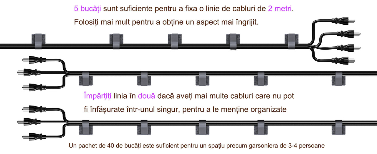 Set 40 Organizator cabluri autoadezive Chinoutton, gestionarea cablurilor, sistem gestionare fire birou casa, Potrivit pentru cabluri mici, Gri/Alb