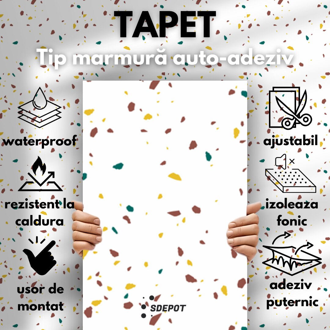 Tapetul autocolant cu imitatie de marmura de la SDEPOT® ofera o solutie inovatoare si eficienta pentru decorarea peretilor interiori, adaugand un plus de eleganta si sofisticare oricarui spatiu.