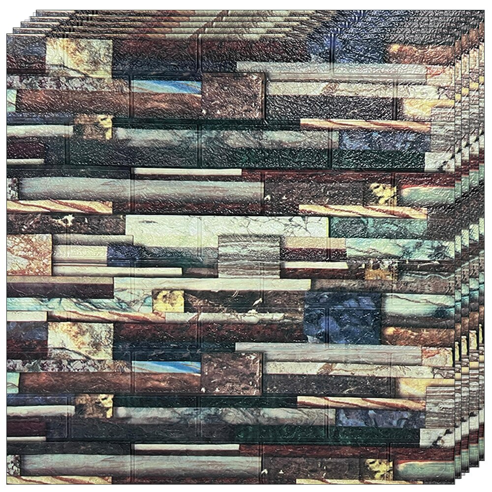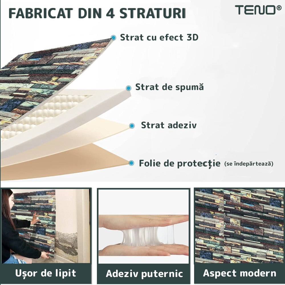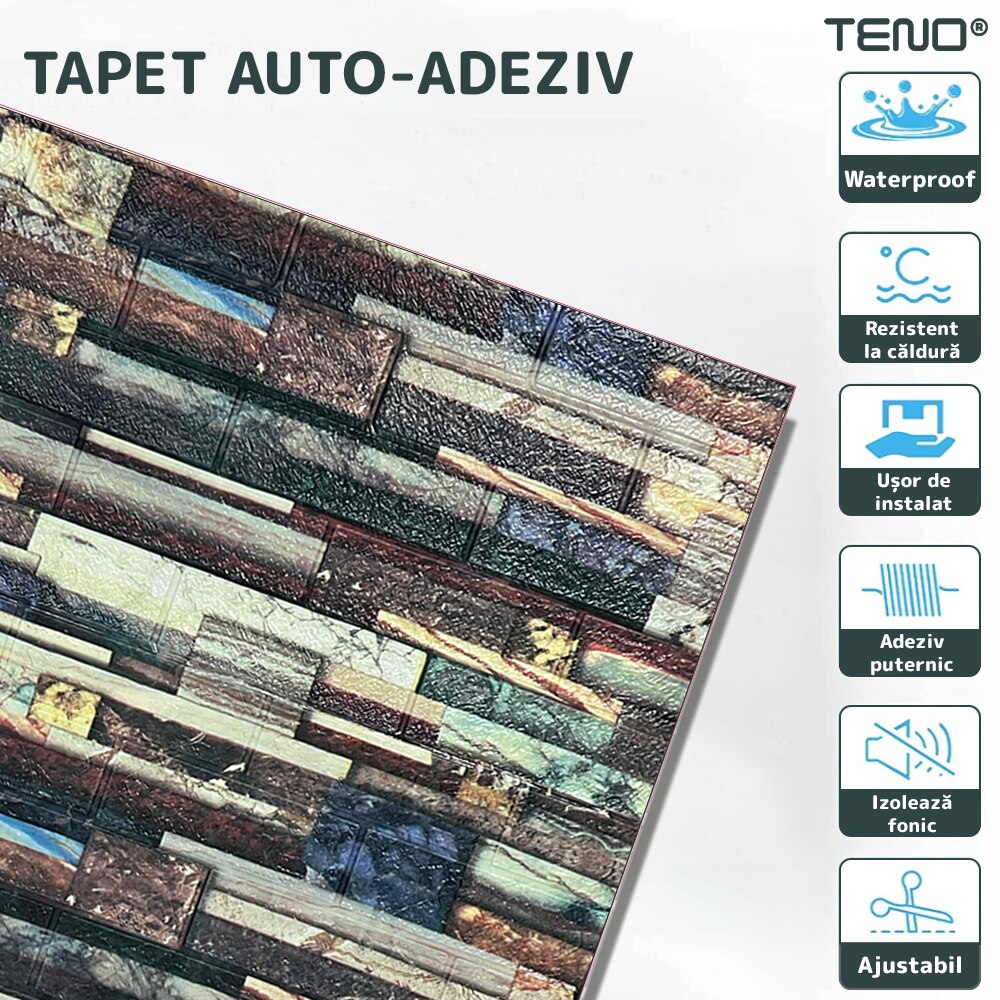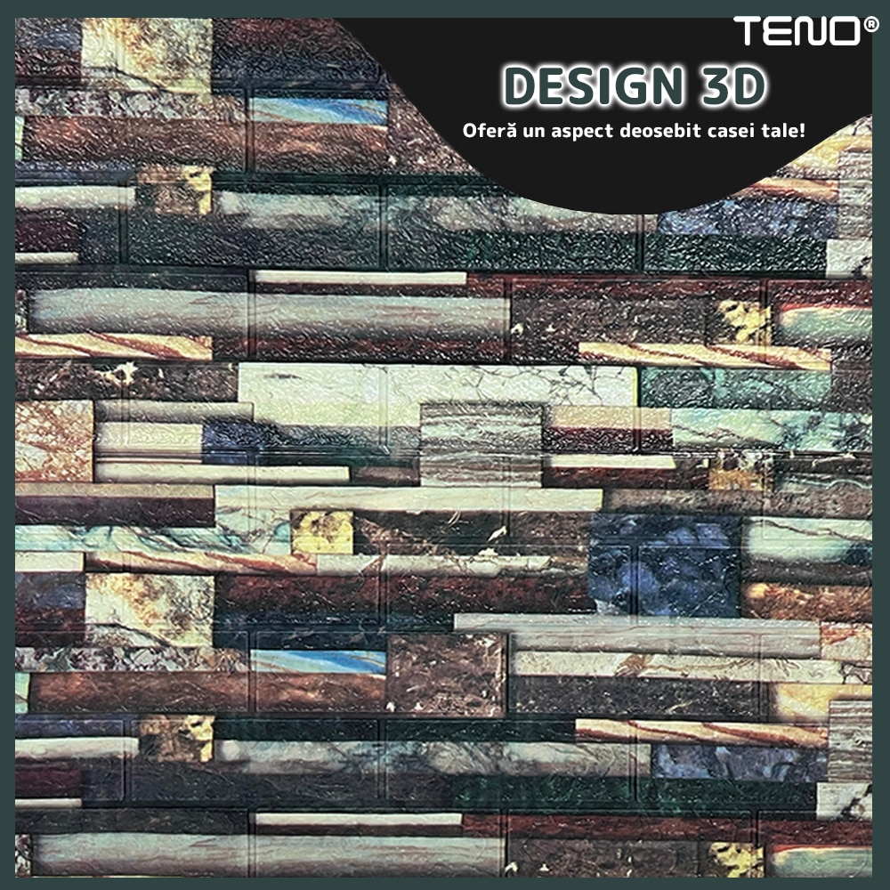 Set 40x Tapet Caramida 3D Teno®, Model Lemn Marmotat, suprafata acoperire 21.2 mp, autoadeziv, waterproof, usor de montat, design modern, 70x77 cm, multicolor