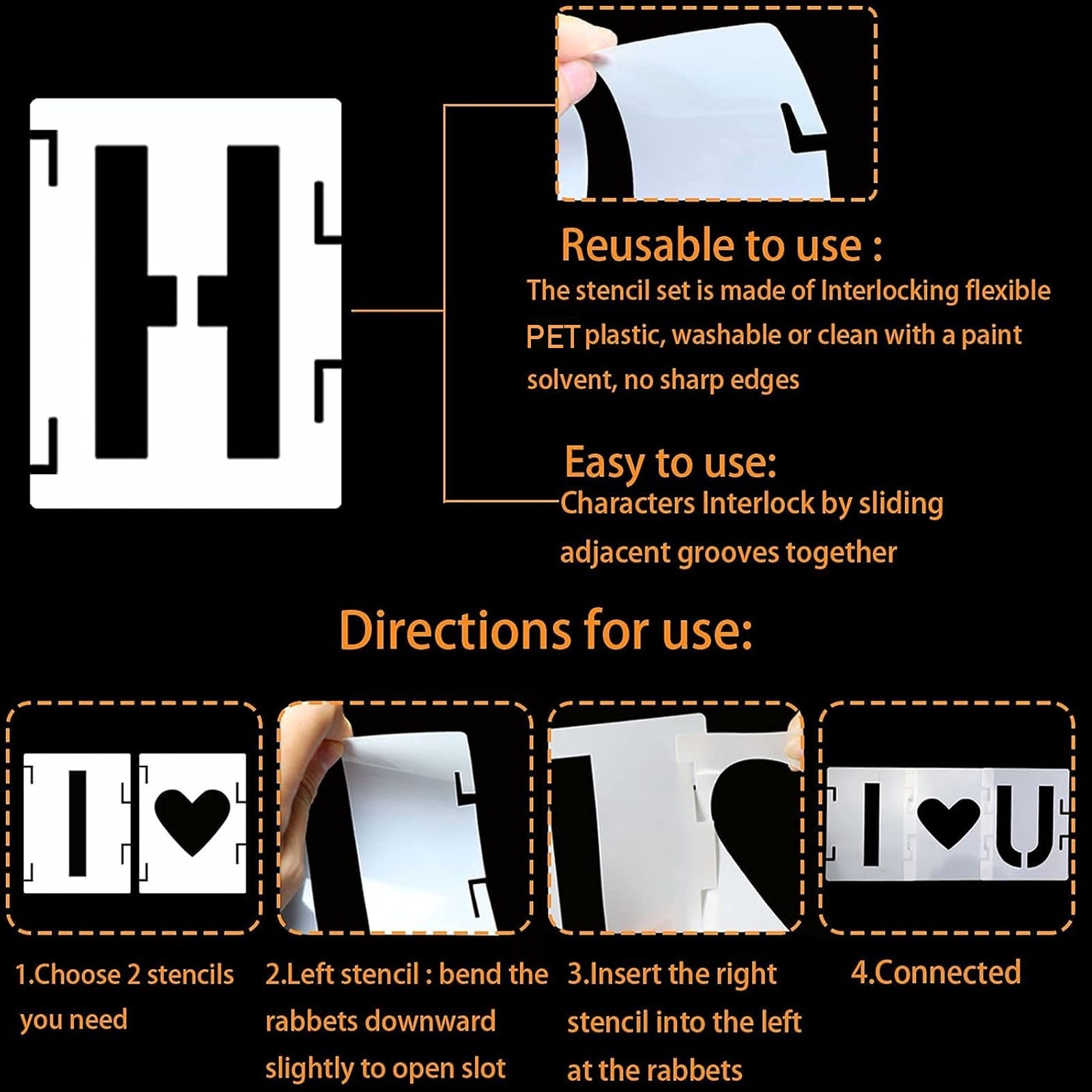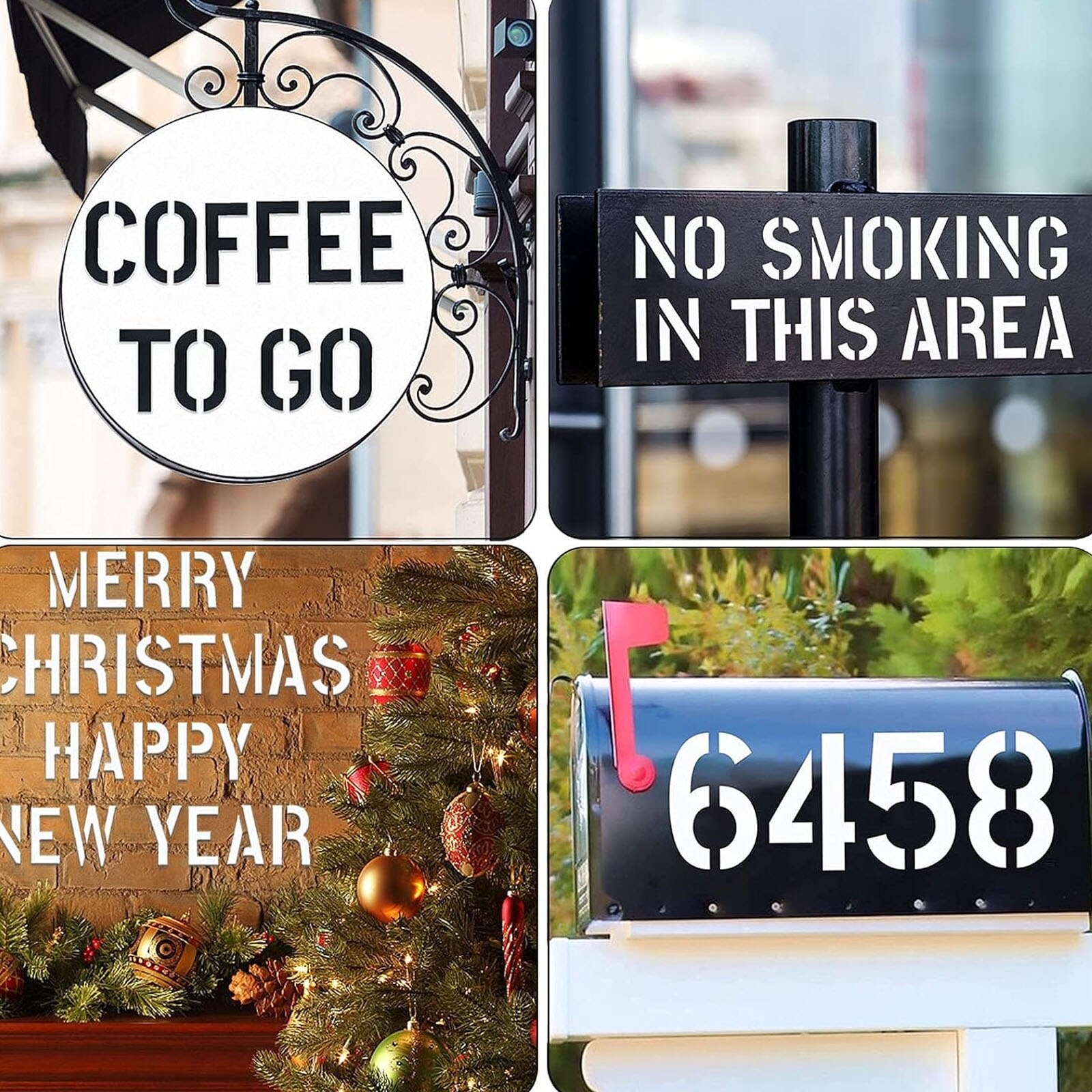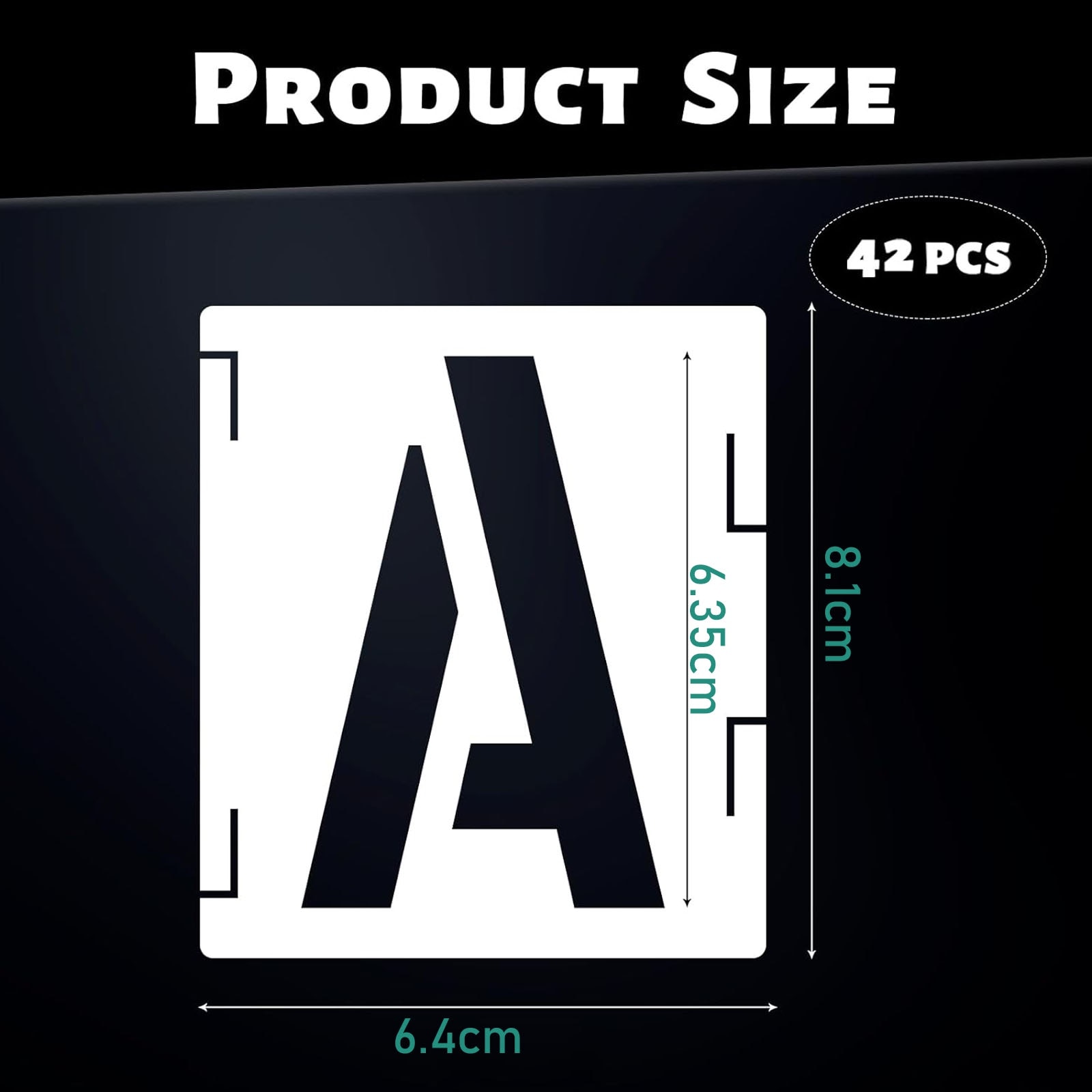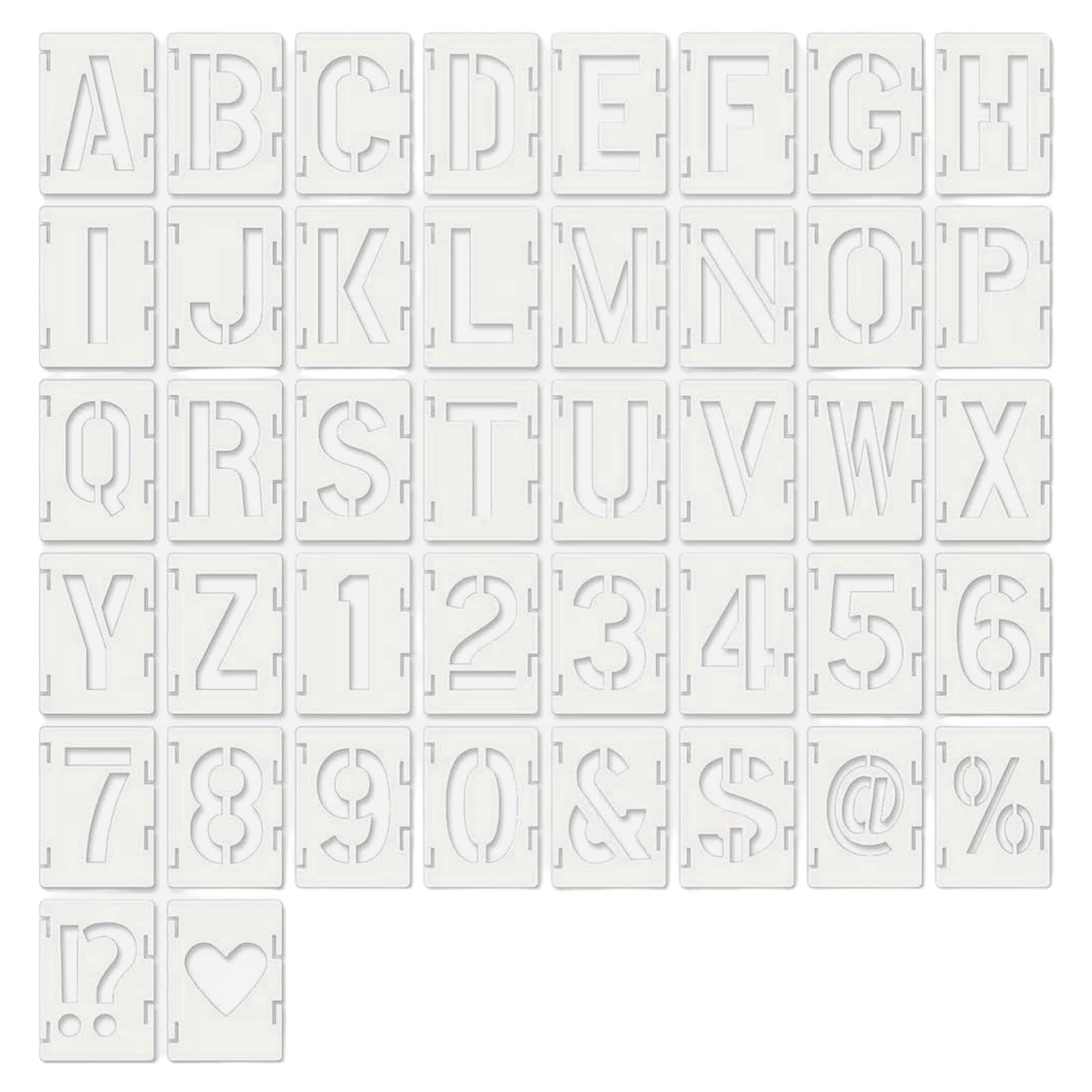 Set 42 Sabloane Refolosibile Alfabet, Numere si Simboluri, SINBINTA, Refolosibil, Rezistenta la temperaturi ridicate, Usor de utilizat si de curatat, Pentru pictura pe lemn, perete, proiecte de arta bricolaj, PET, 8.1*6.4cm, Alb