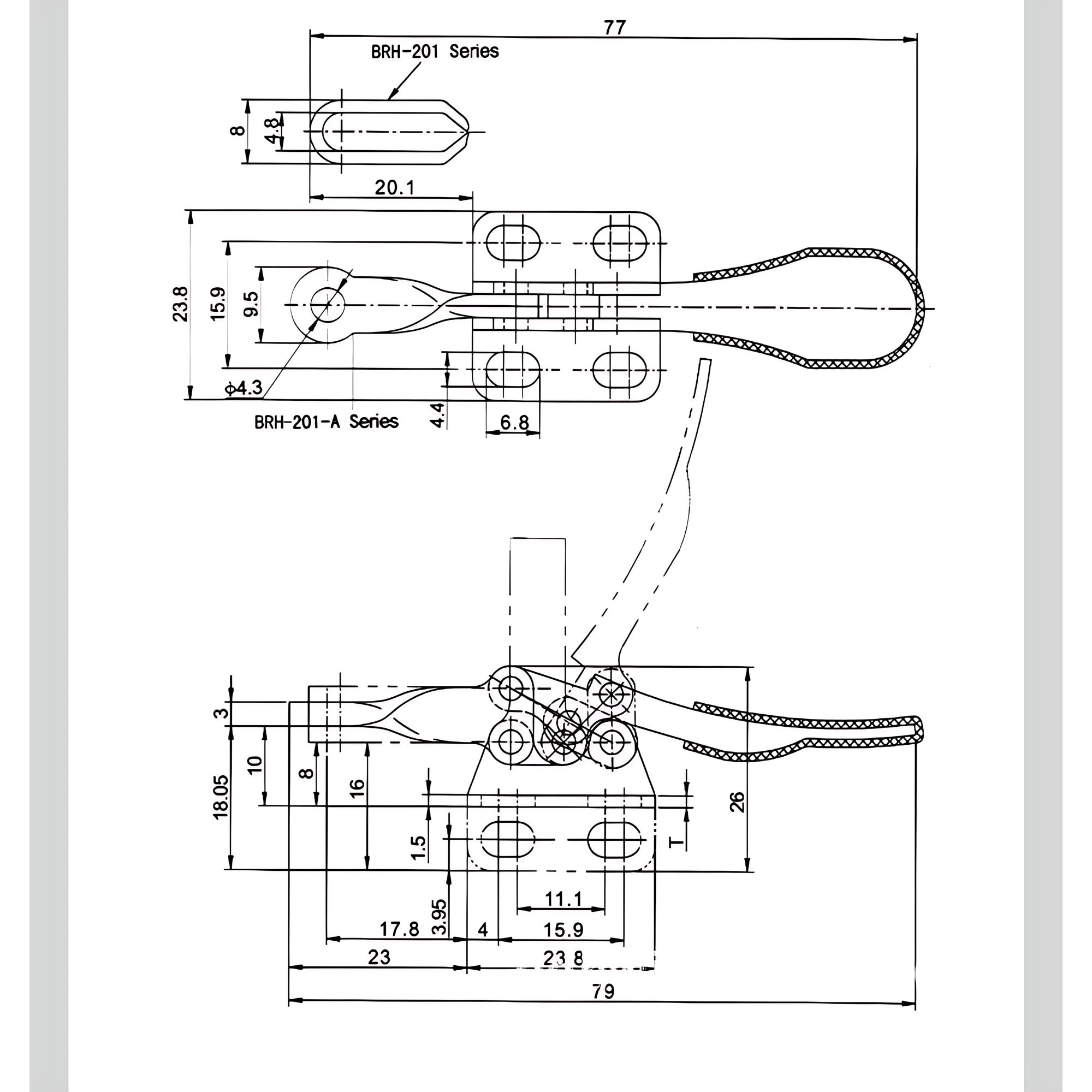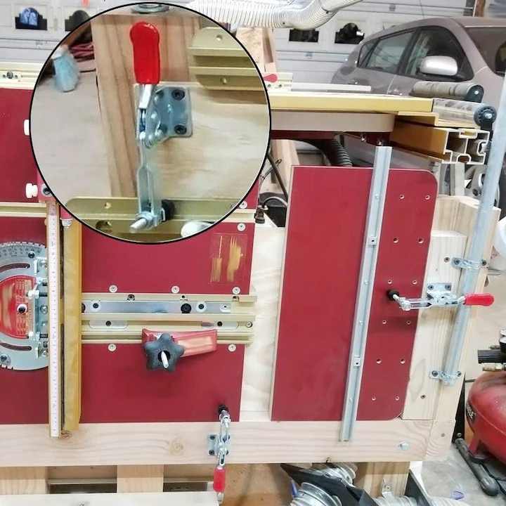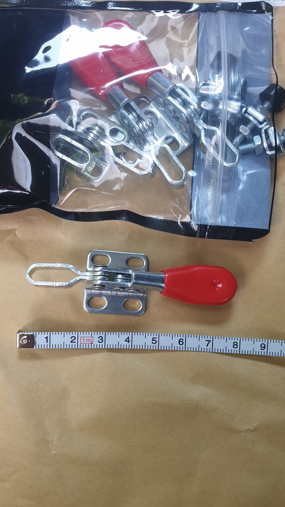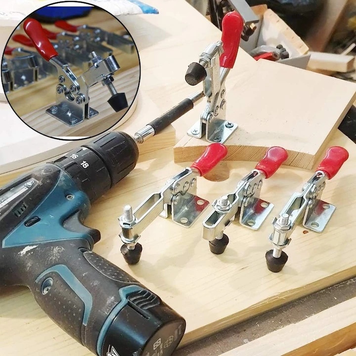Set 5 Cleme de Prindere Orizontale GH-201, Capacitate 30KG, antiderapante, eliberare rapida, inox, 7.9X2.38X1.8CM, Argintiu/Rosu