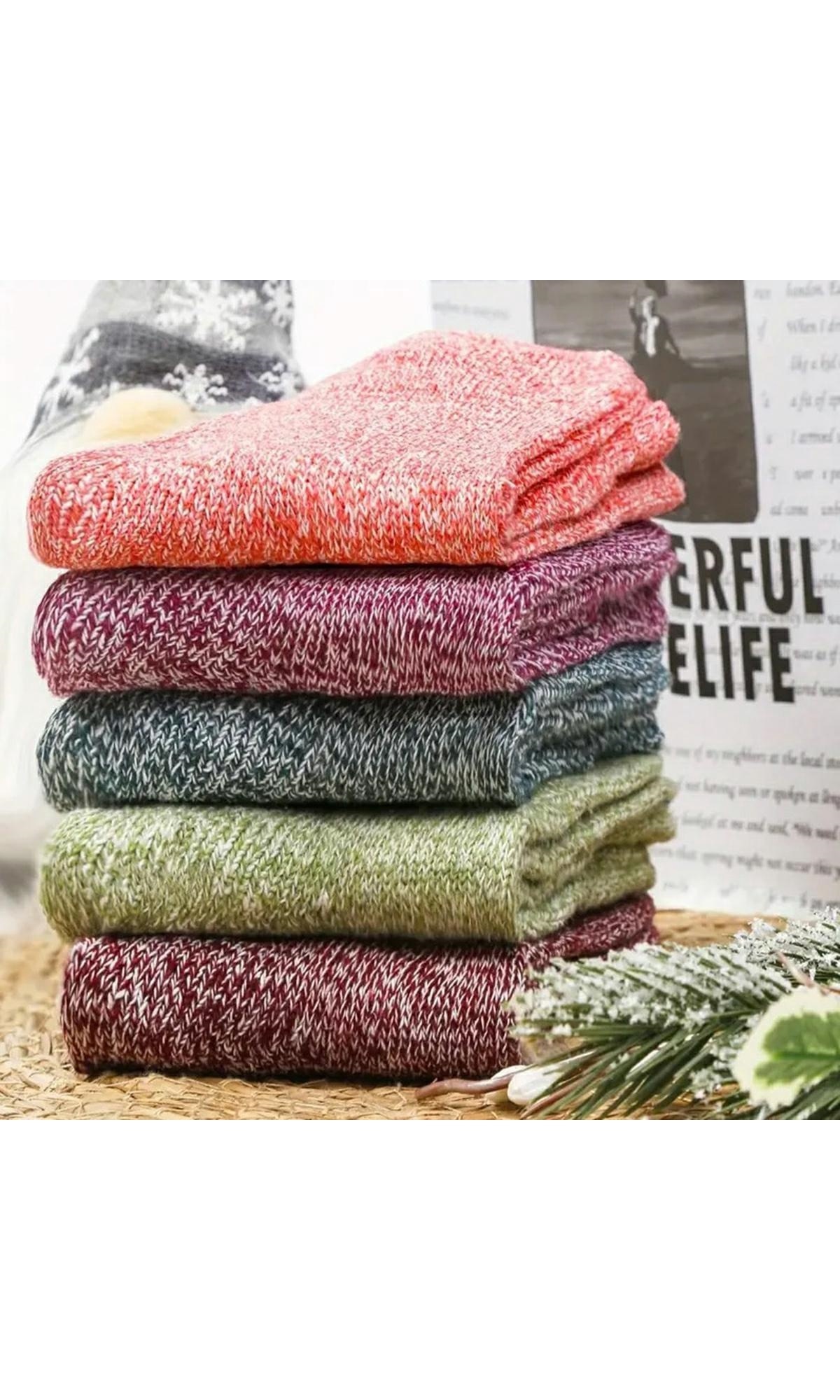 Set 5 perechi de sosete femei, Zola, din tricot, pentru iarna, marimea 36-39, multicolor