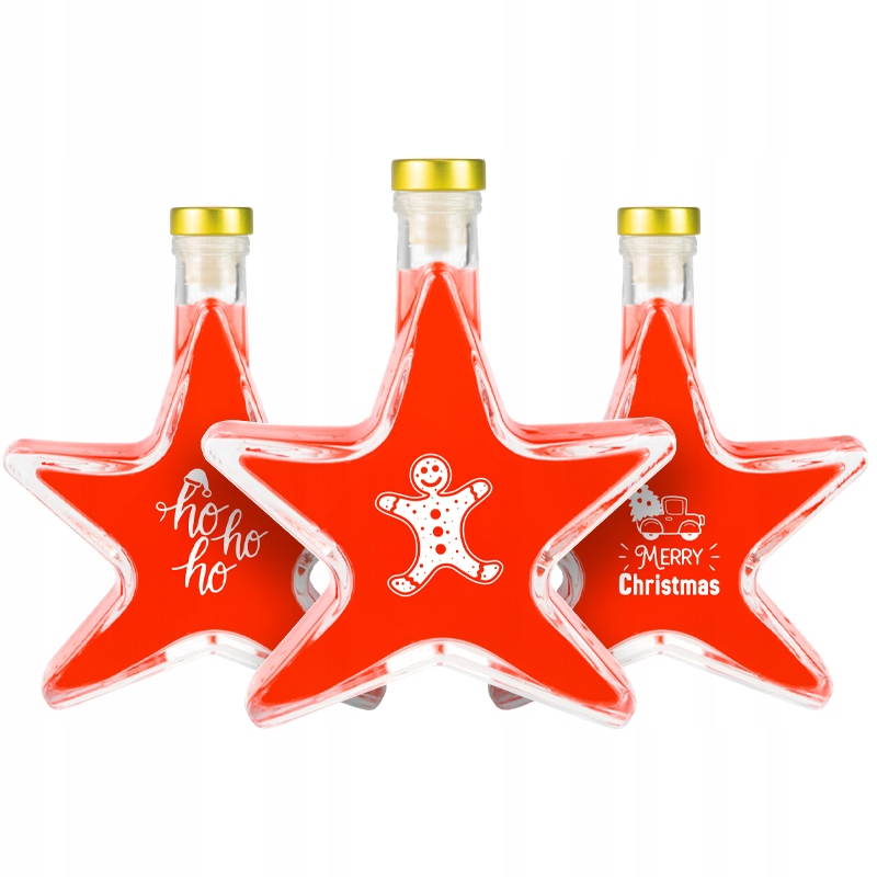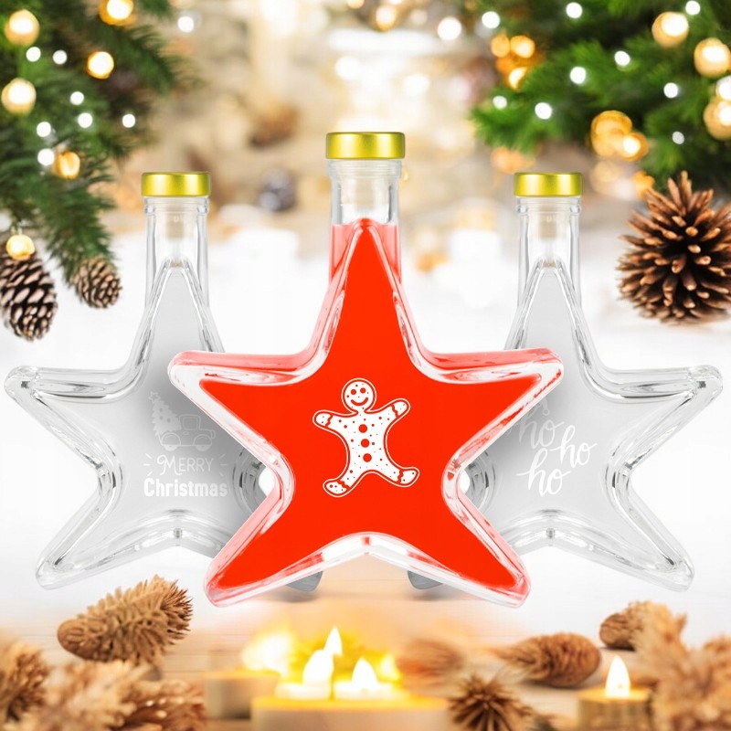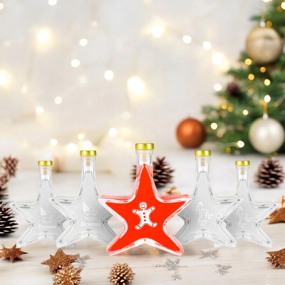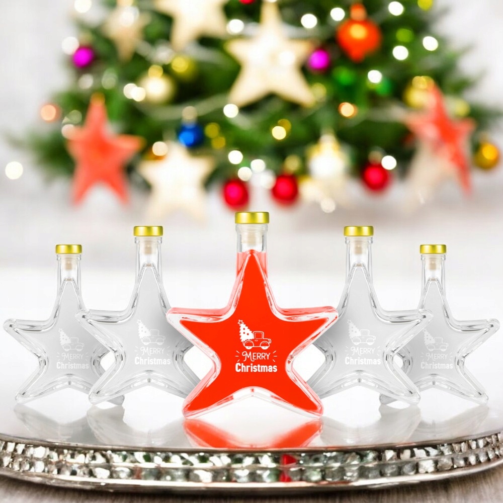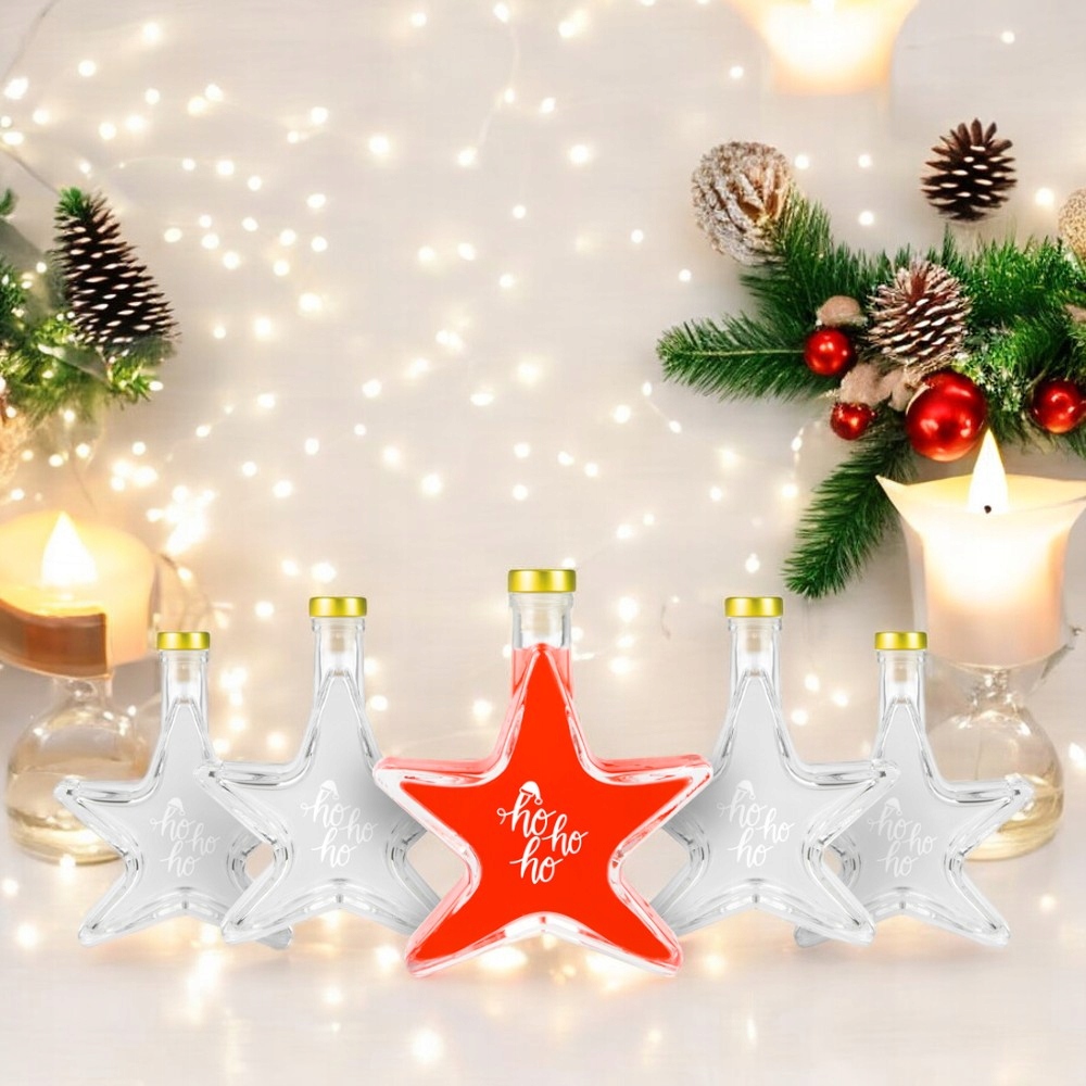 Set 5 Sticle Bimberek 200ml, Forma de Stea, Transparenta, Capac Auriu
