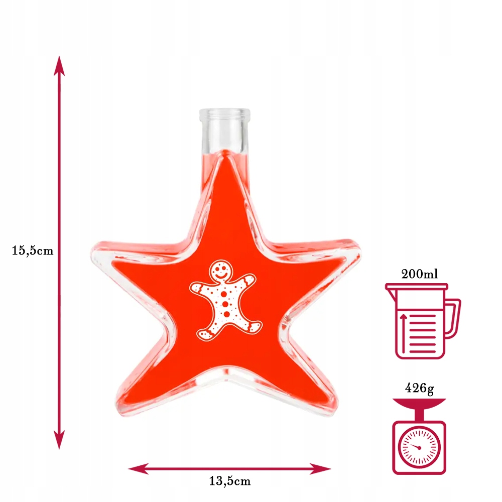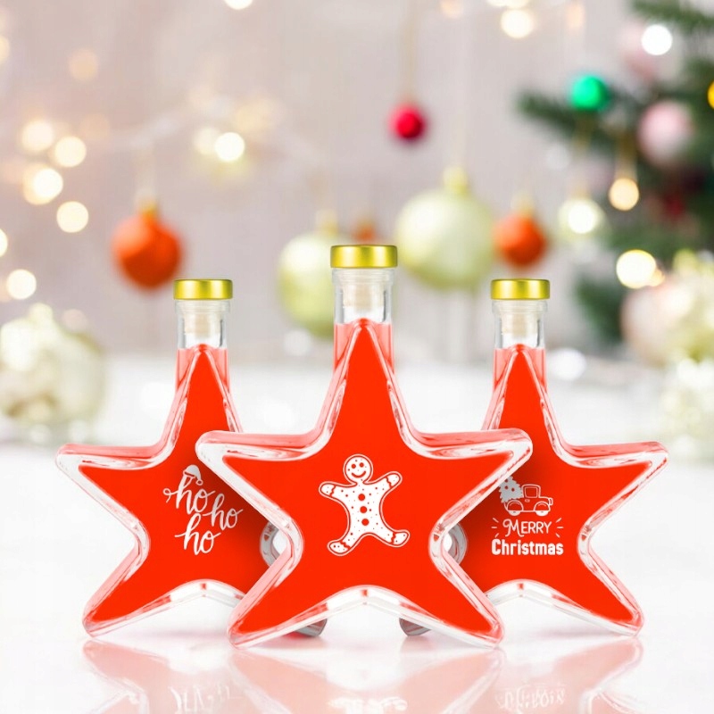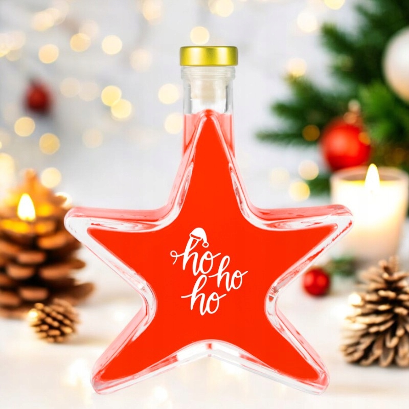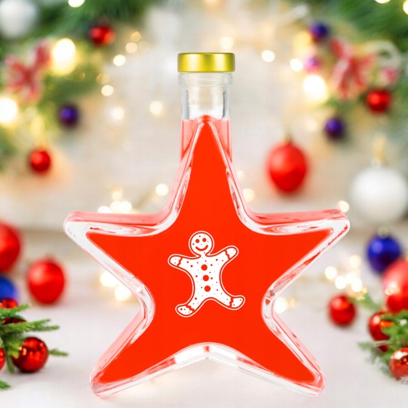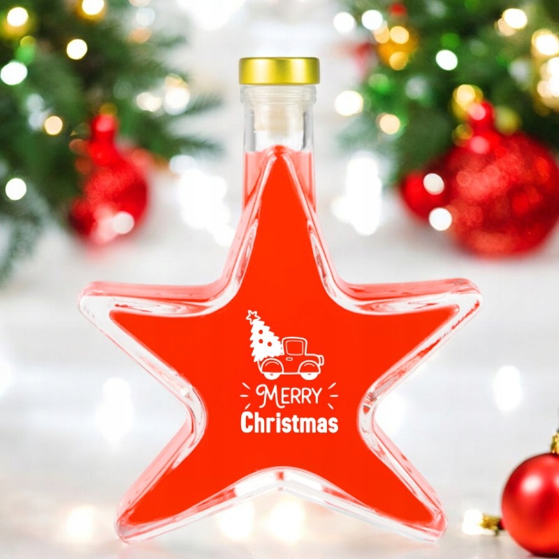 Set 5 Sticle Bimberek 200ml, Forma de Stea, Transparenta, Capac Auriu