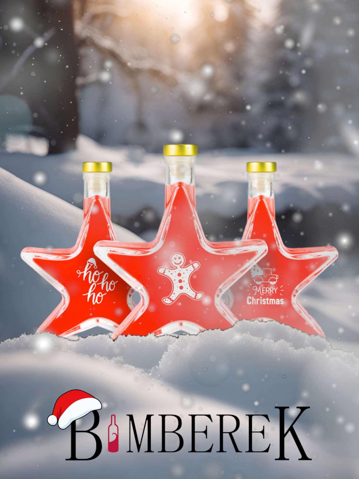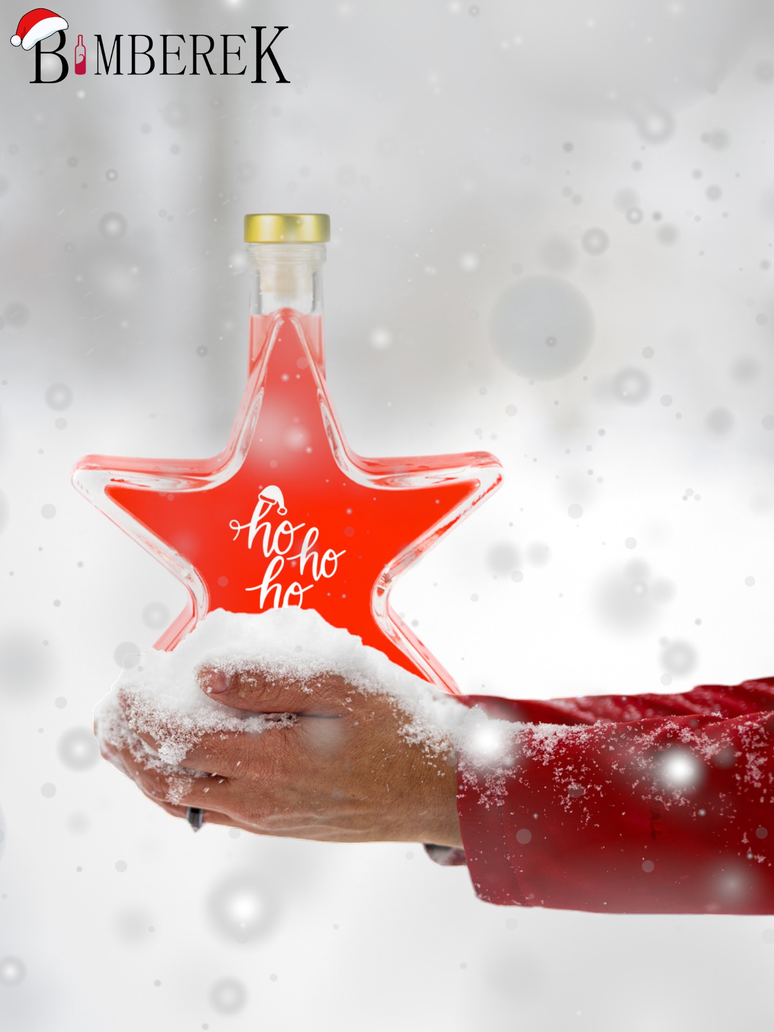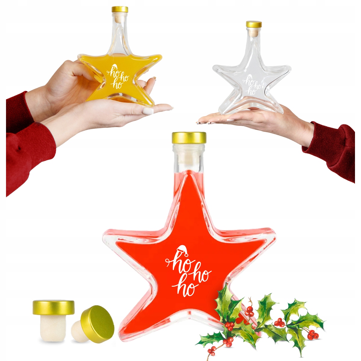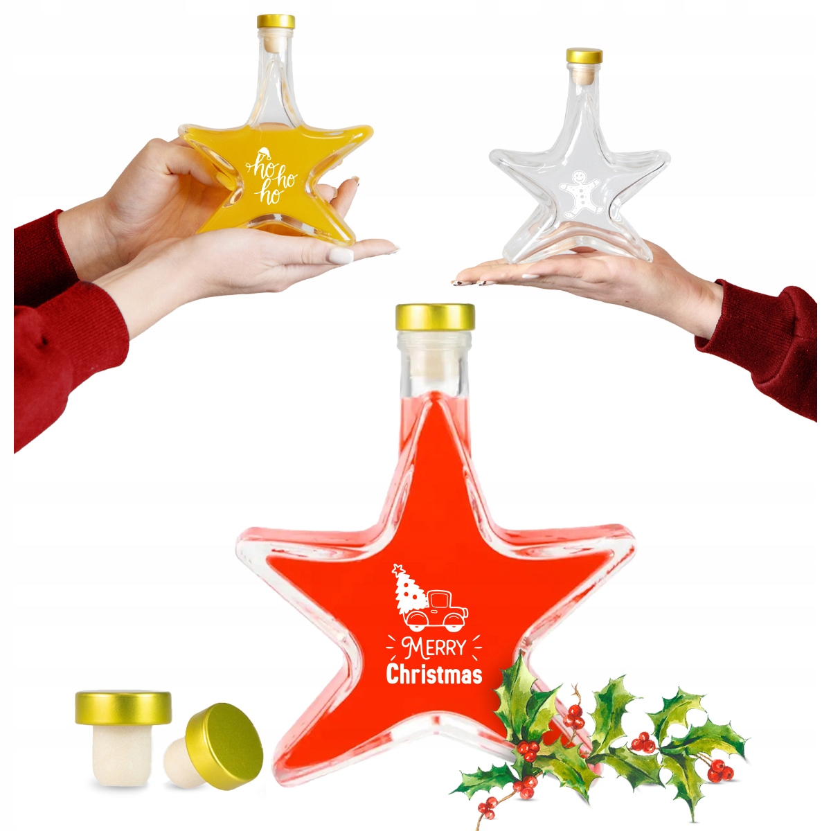 Set 5 Sticle Bimberek 200ml, Forma de Stea, Transparenta, Capac Auriu