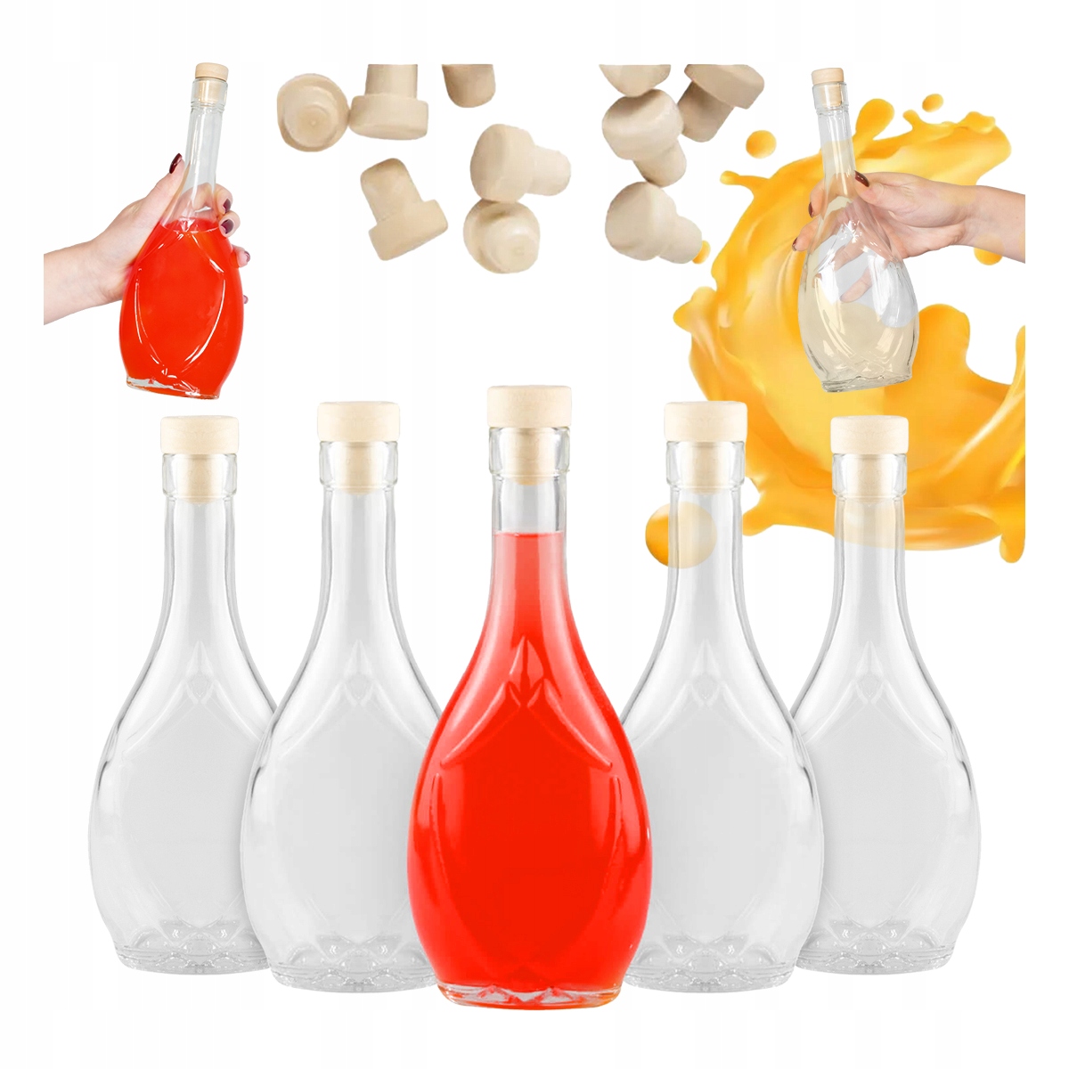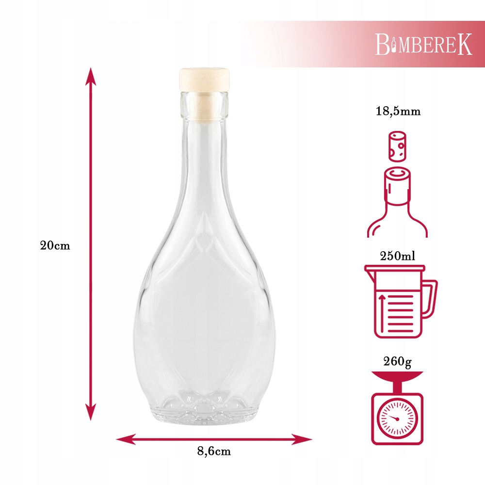 Set 5 Sticle Bimberek 250ml, 20x8,6cm, pentru Vin, lichior, cu Capac, transparent