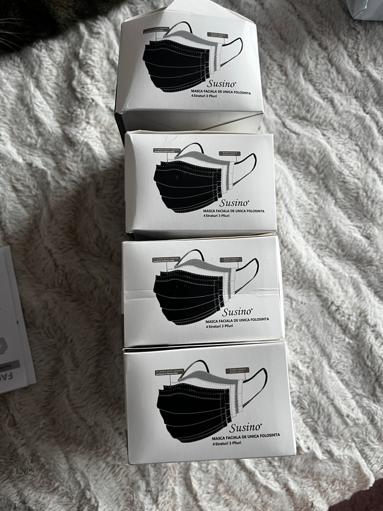 Set 50 bucati masti faciale, de unica folosinta, 3 straturi, Albastru inchis, SUSINO