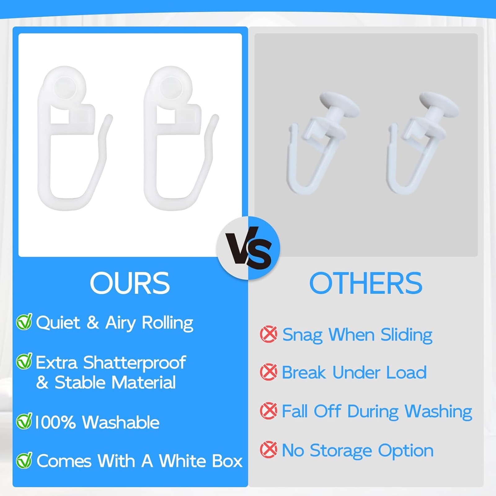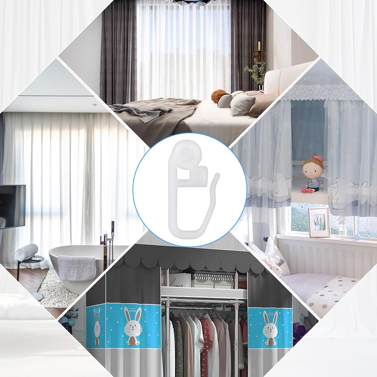Set 50 Carlige Perdele, Hggzeg, Cu rola, Usor de instalat si de utilizat, Rezistent la uzura, Robust si durabil, Reutilizabile, Pentru dormitor, living, Plastic, 27x8mm, Alb