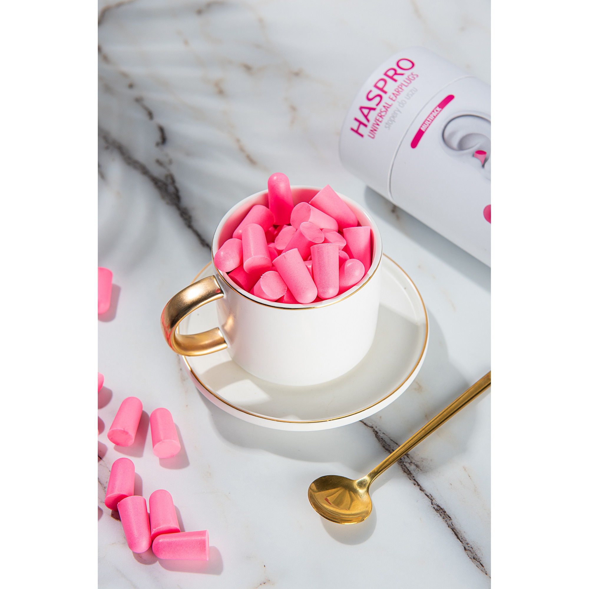 Set 50 dopuri de urechi, Haspro, Tube 50, pentru somn, bricolaj, anularea zgomotului, SNR 38dB, Roz