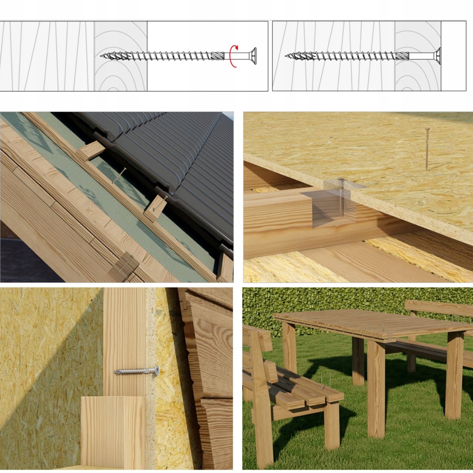 in plus, aceste suruburi sunt perfecte pentru o varietate de aplicatii in elemente din lemn, inclusiv: in structuri din lemn masiv, lemn lipit sau placi asemanatoare lemnului.