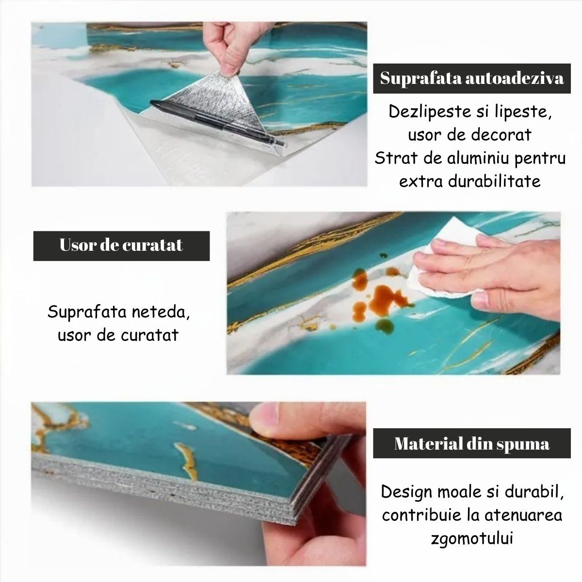 Set 6 panouri decorative autoadezive cu folie de aluminiu, efect marmura, suprafata acoperita 1.08 m², Naimeed D7108, 60x30 cm, Gri deschis