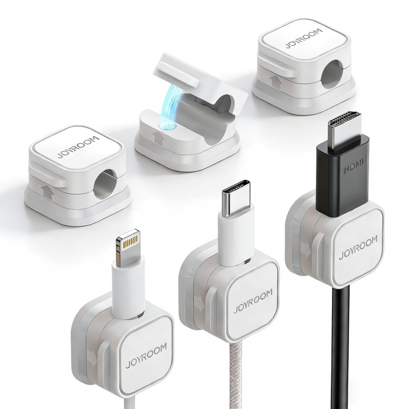Set 6 Prindatoare de Cabluri, Cleme Reglabile, Organizator Magnetic Autoadeziv, pentru Birou/Pat/Incarcatoare, Compatibil HDMI/USB/Audio, Alb