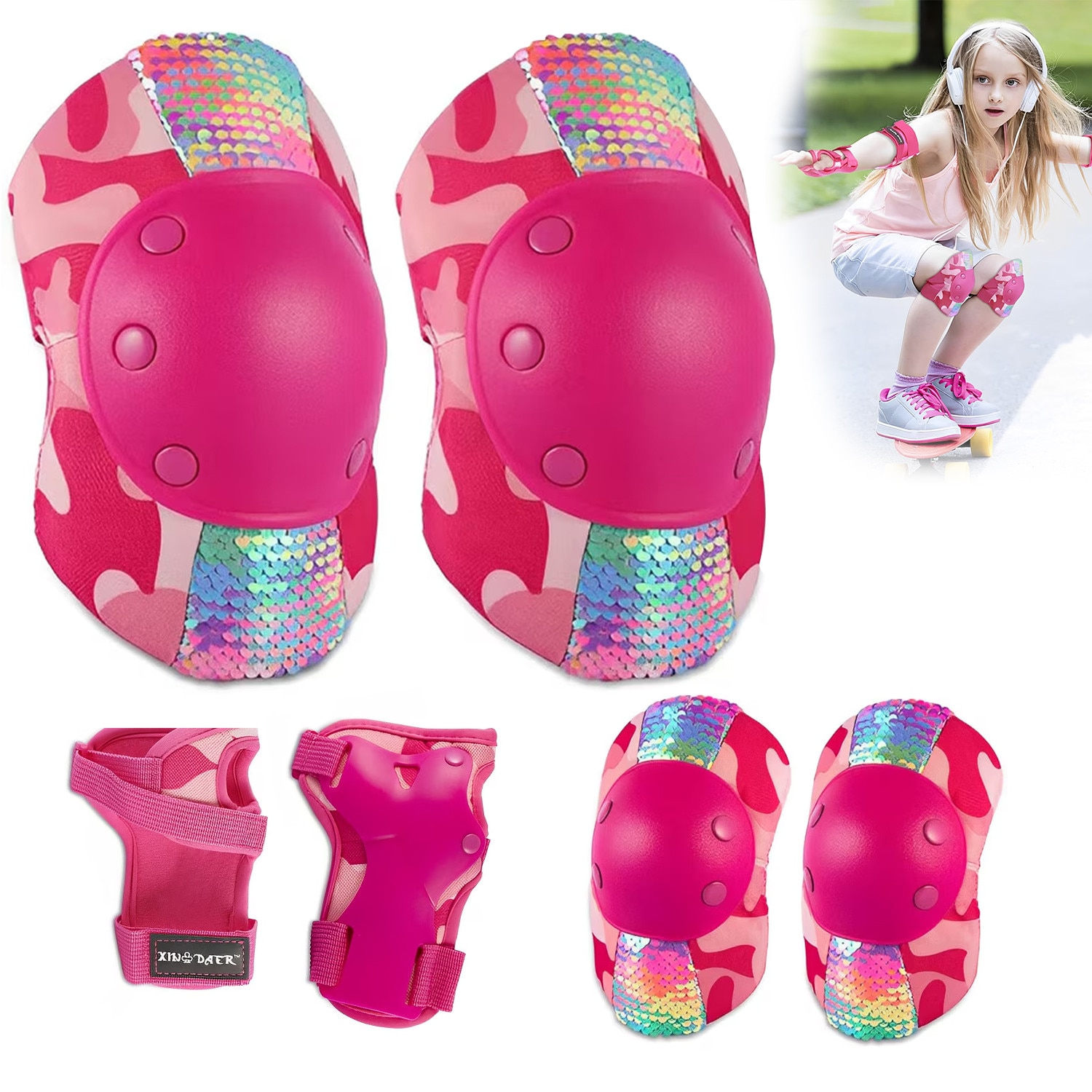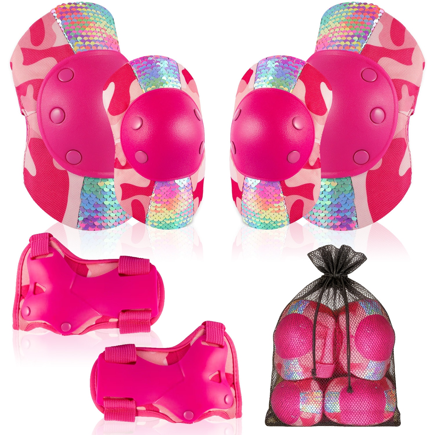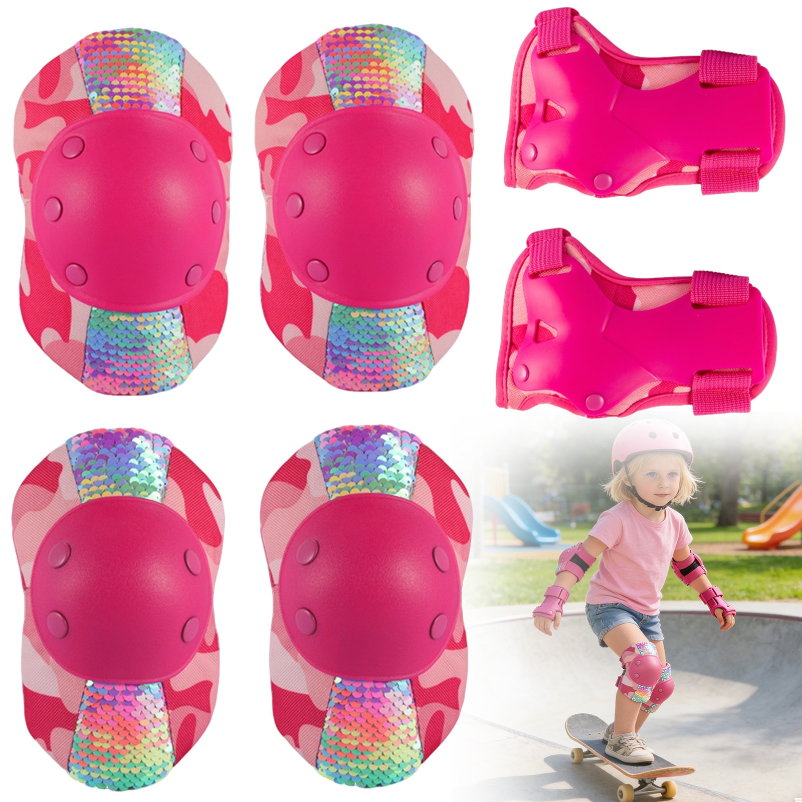 Set 6 Protectii Genunchiere Copii, BYONDSELF, Genunchiere, EVA, PP, Cotiere, Aparatori Incheieturi, Respirabile, Rosu, S