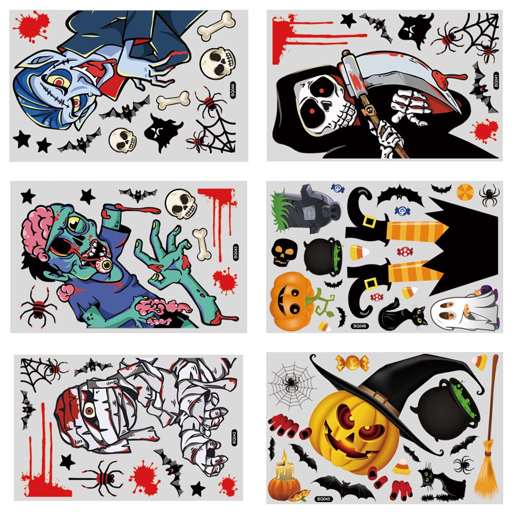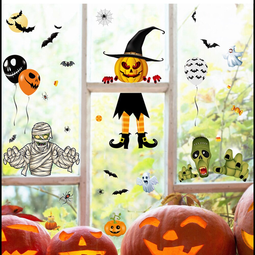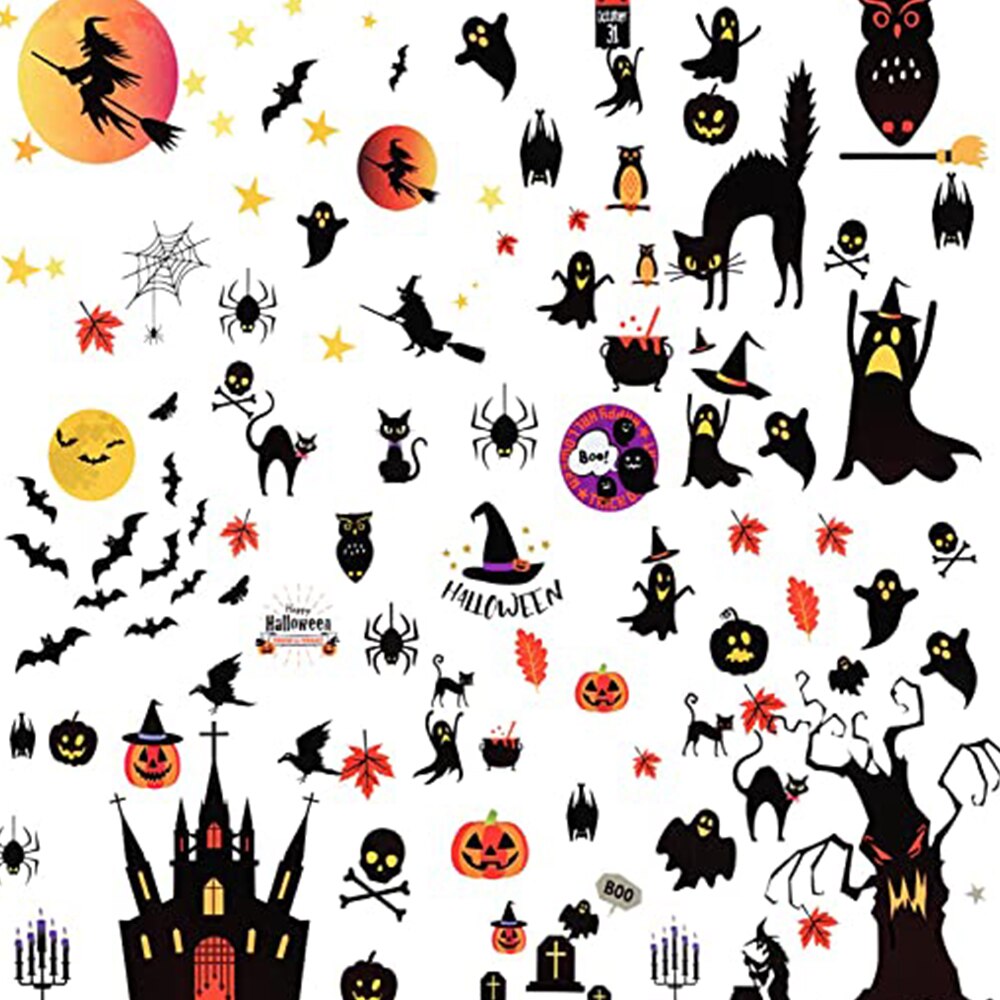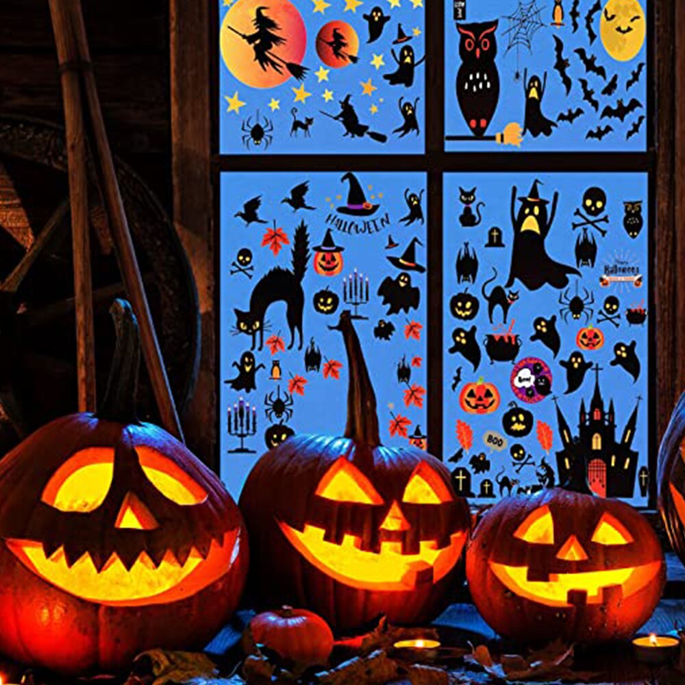 Set 6 stickere decorative pentru geam, Halloween, dubla fata, reutilizabile, multicolor, 66x62cm