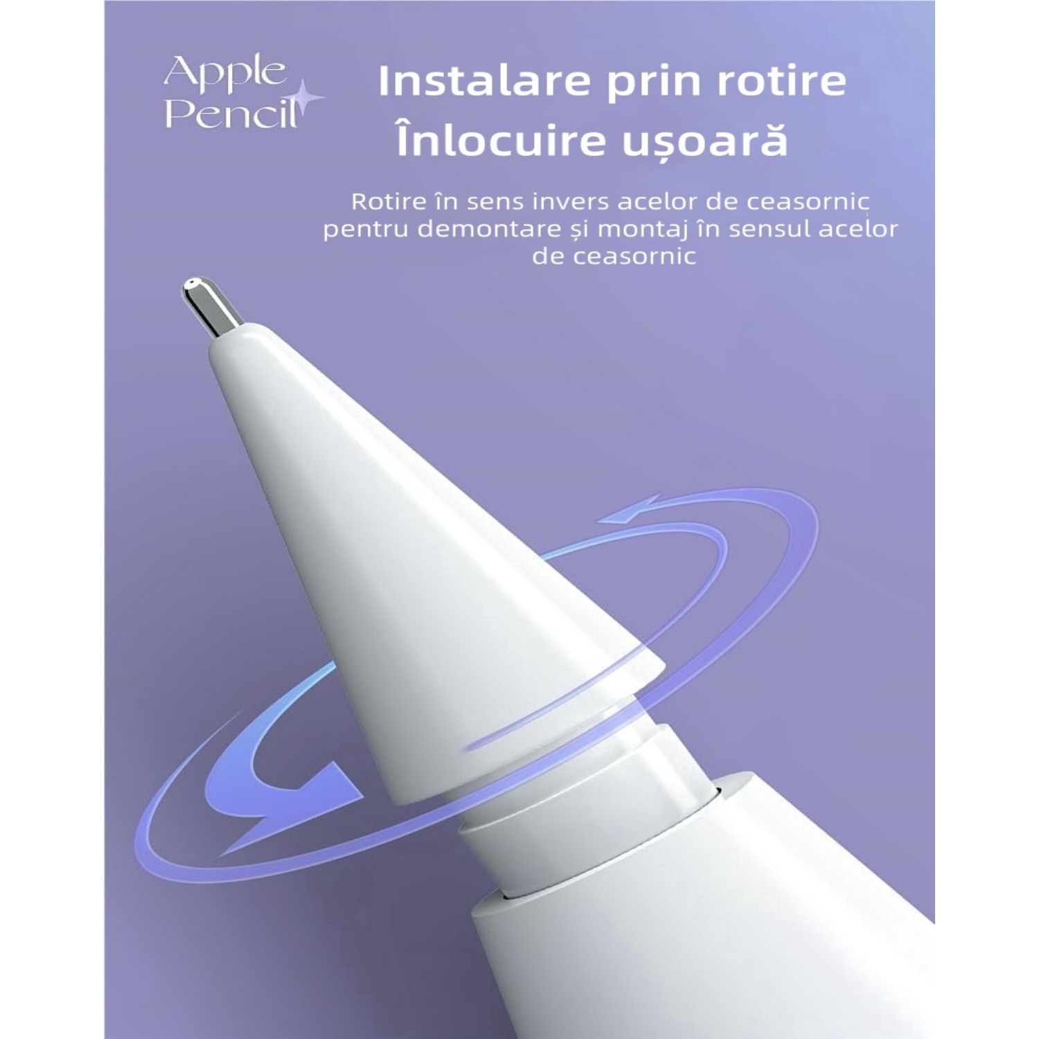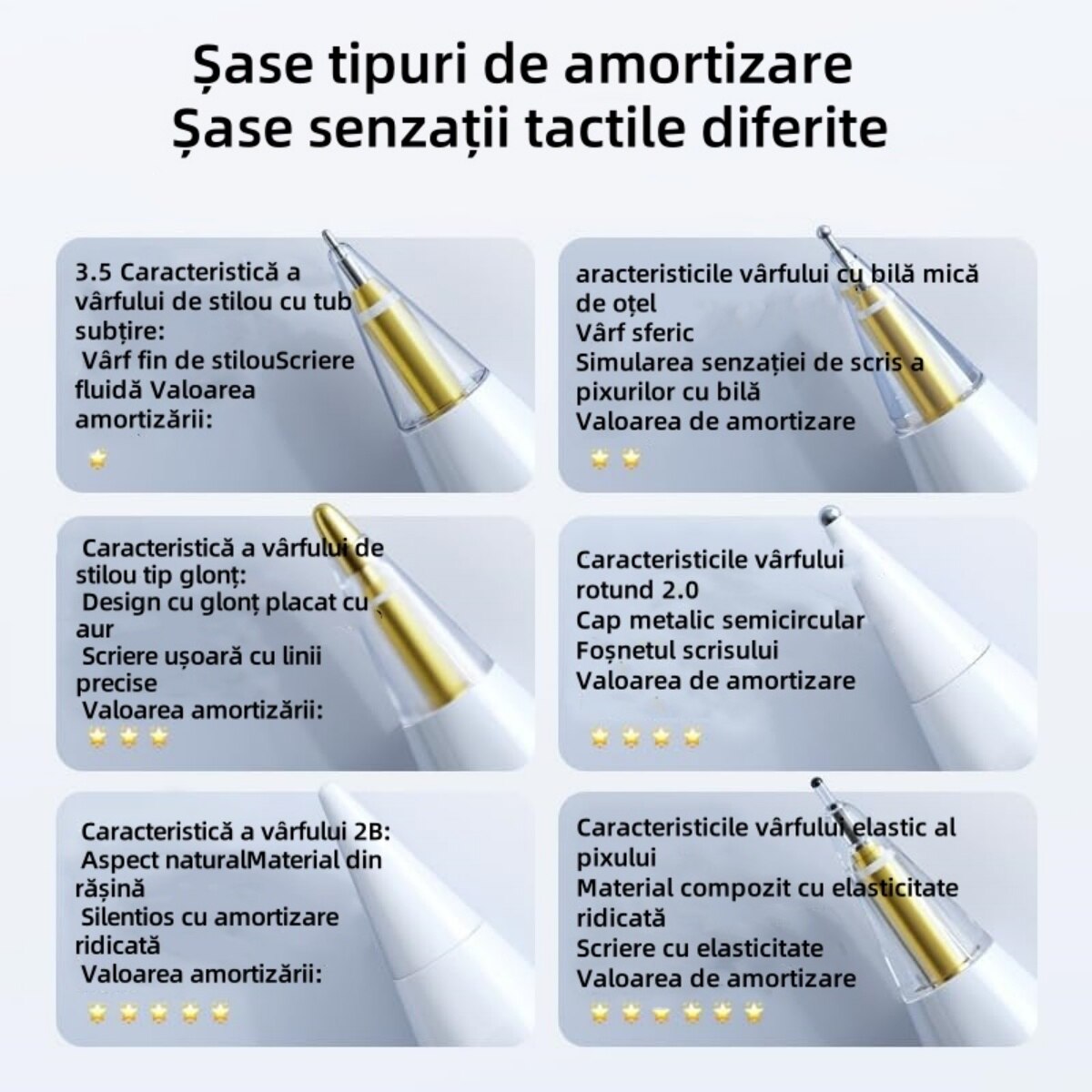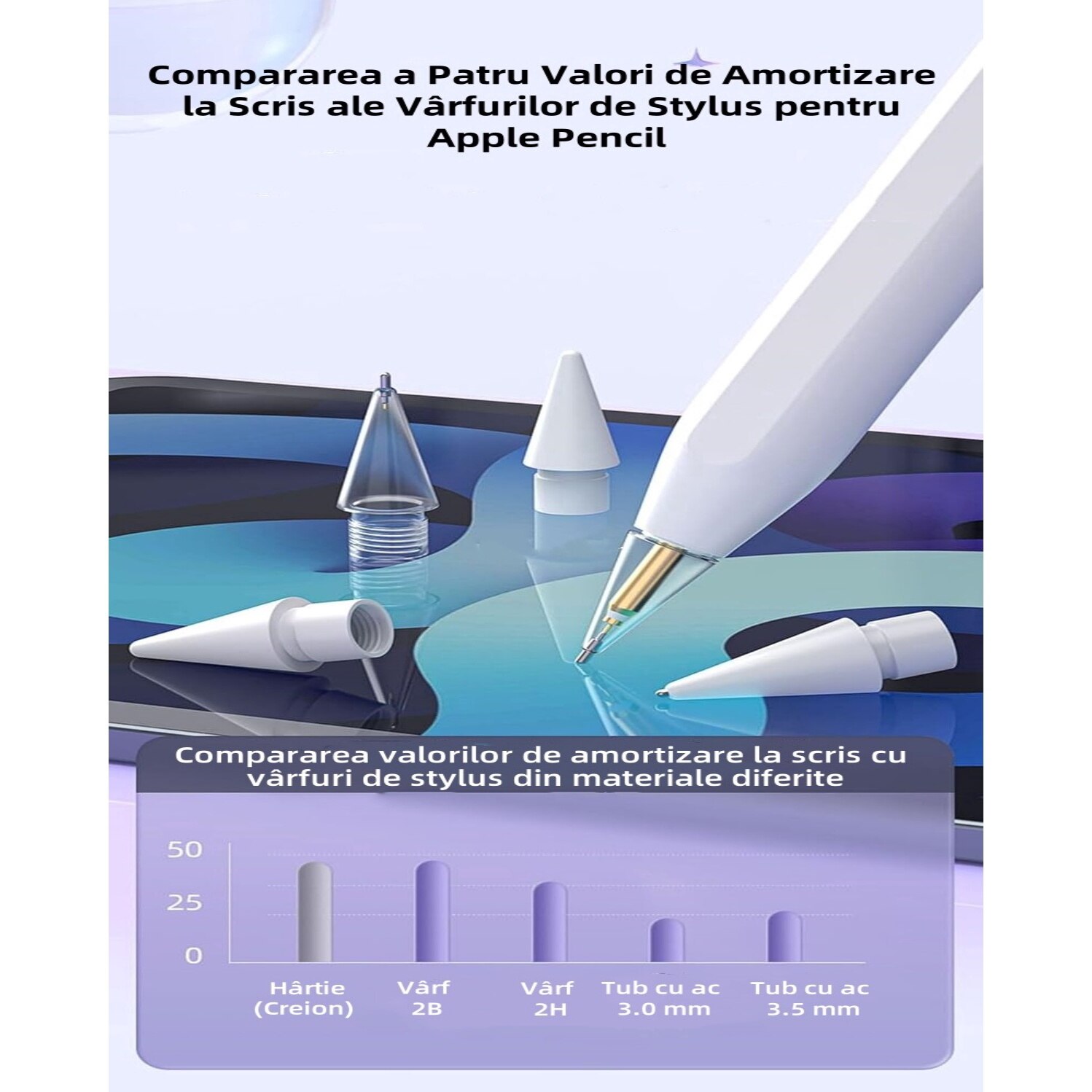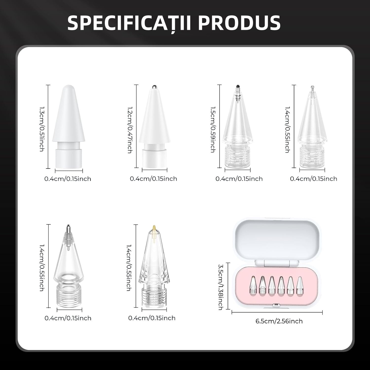 Set 6 varfuri de inlocuire pentru Apple Pencil, compatibile cu iPad Pro, din otel inoxidabil, rezistente la uzura, culori: auriu, argintiu, alb